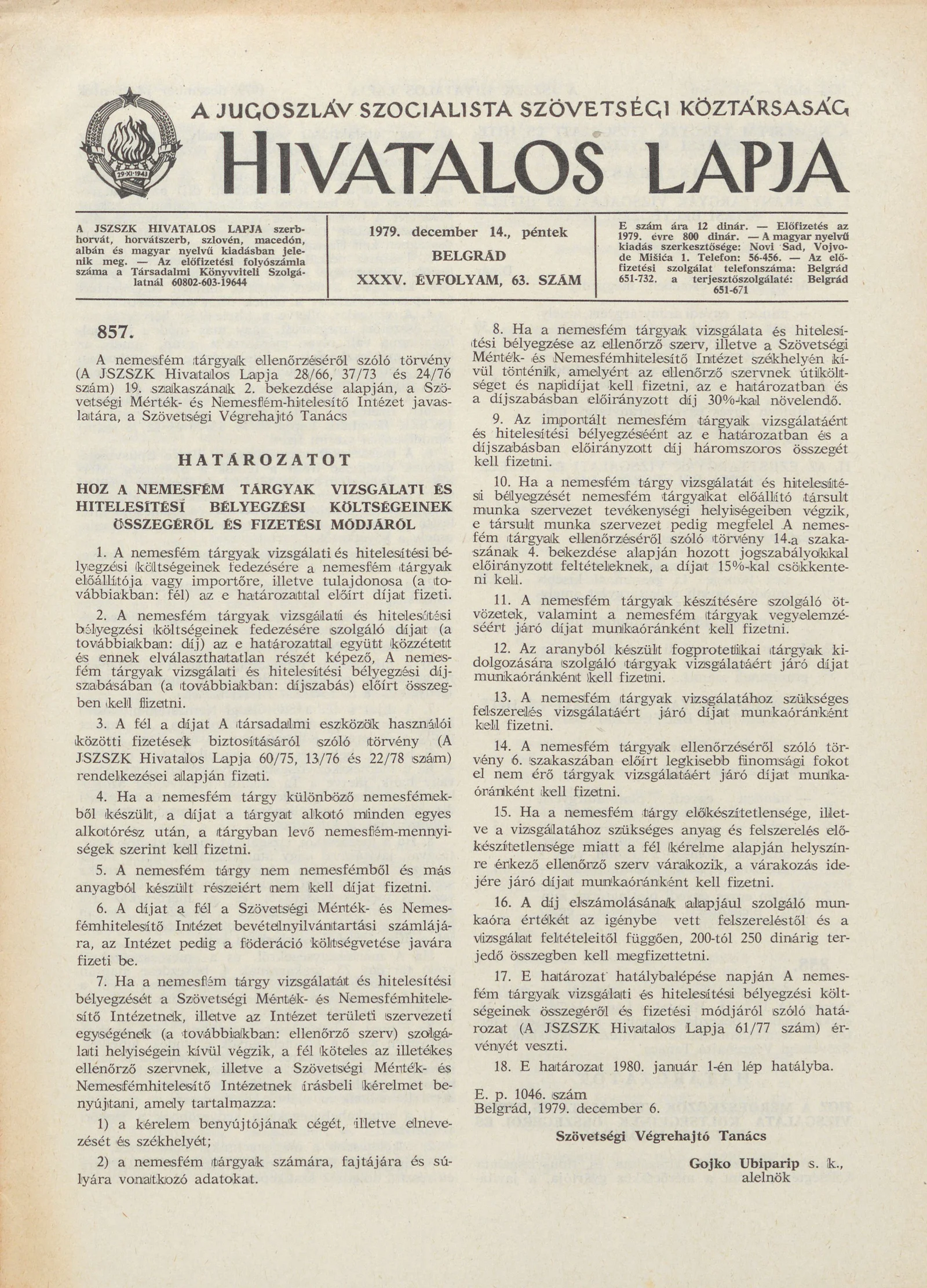 A Jugoszláv Szocialista Szövetségi Köztársaság Hivatalos Lapja, 35. évf. 1979. december 14. 63. sz. 1837–1868. oldal