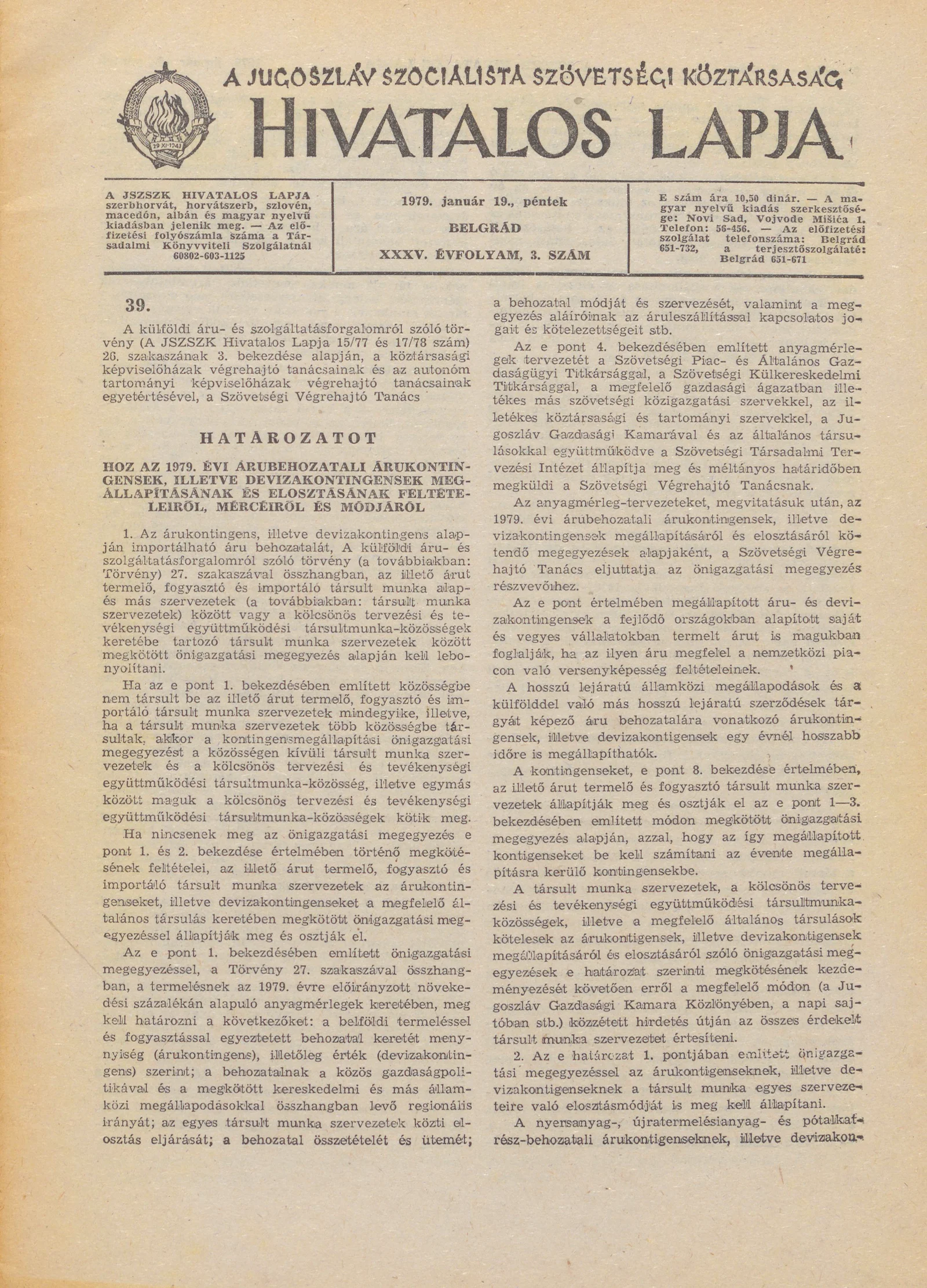 - A Jugoszláv Szocialista Szövetségi Köztársaság Hivatalos Lapja