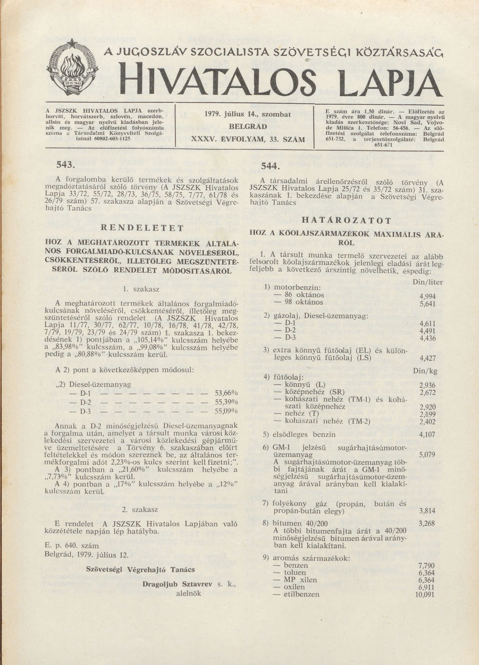 A Jugoszláv Szocialista Szövetségi Köztársaság Hivatalos Lapja, 35. évf. 1979. július 14. 33. sz. 1065–1068. oldal