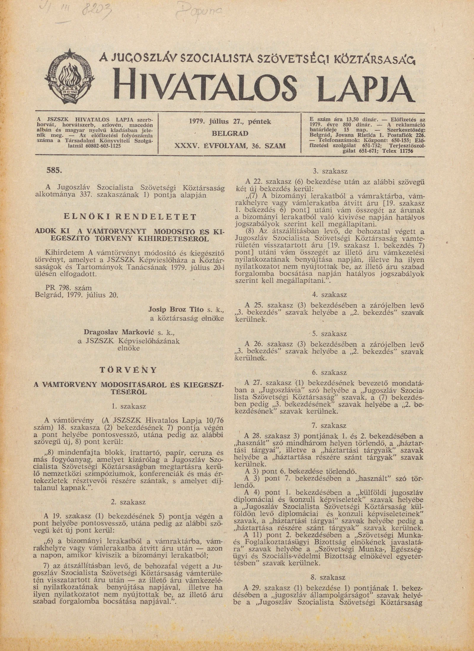 - Helyesbítése A Jugoszláv Szocialista Szövetségi Köztársaság állampolgárainak útiokmányairól szóló törvénynek 1143