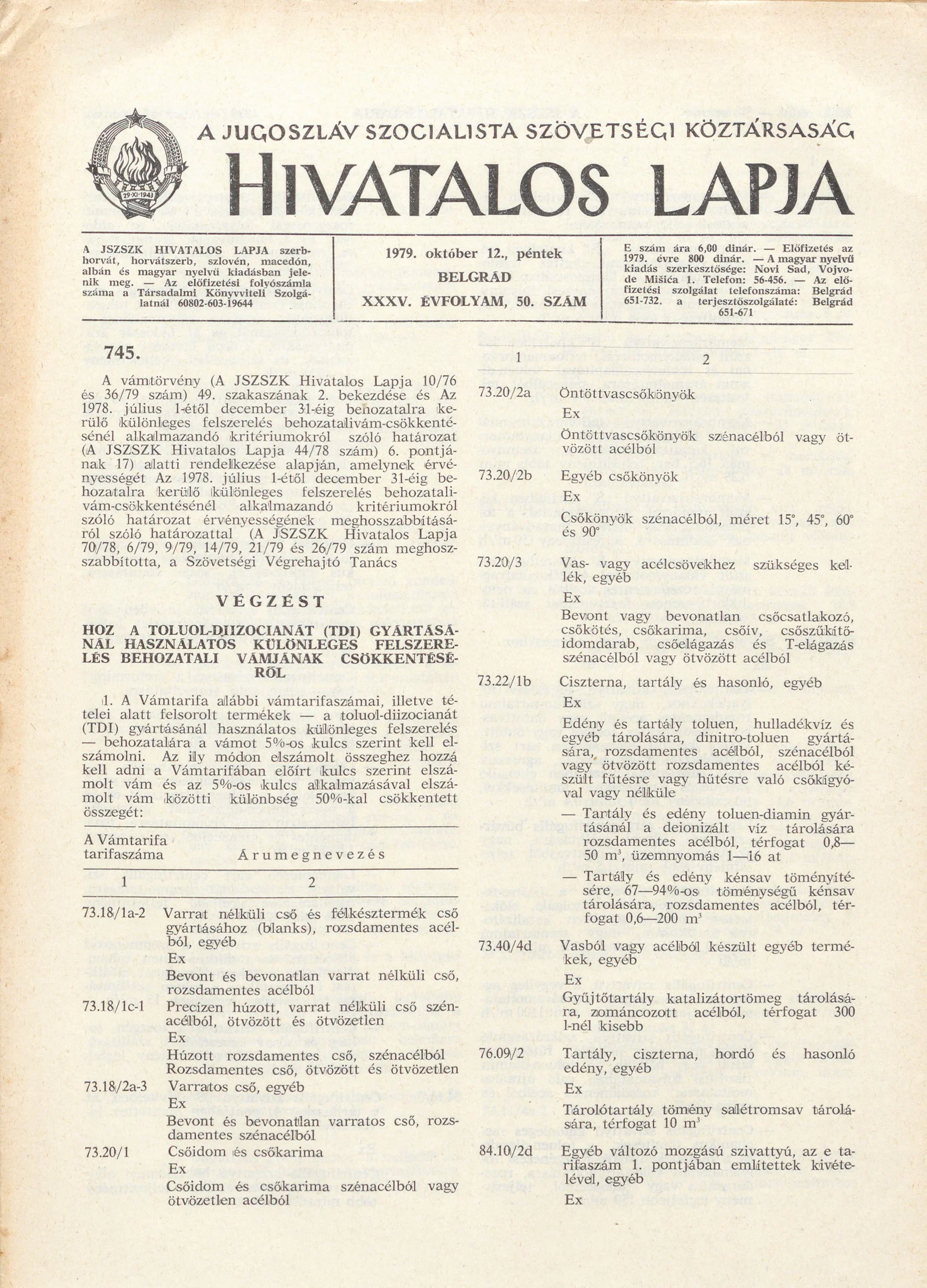 A Jugoszláv Szocialista Szövetségi Köztársaság Hivatalos Lapja, 35. évf. 1979. október 12. 50. sz. 1557–1572. oldal