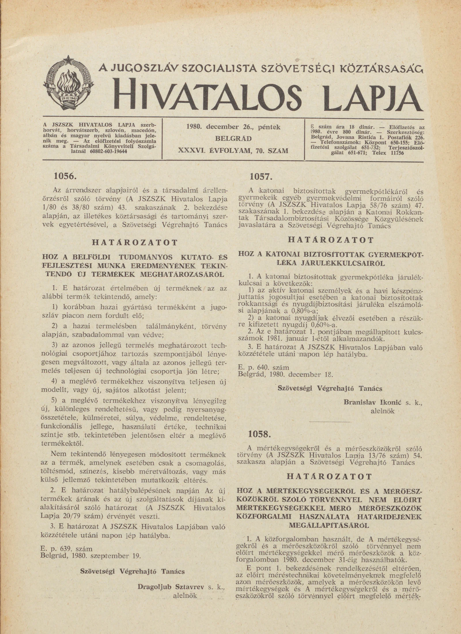 A Jugoszláv Szocialista Szövetségi Köztársaság Hivatalos Lapja, 36. évf. 1980. december 26. 70. sz. 1969–2016. oldal