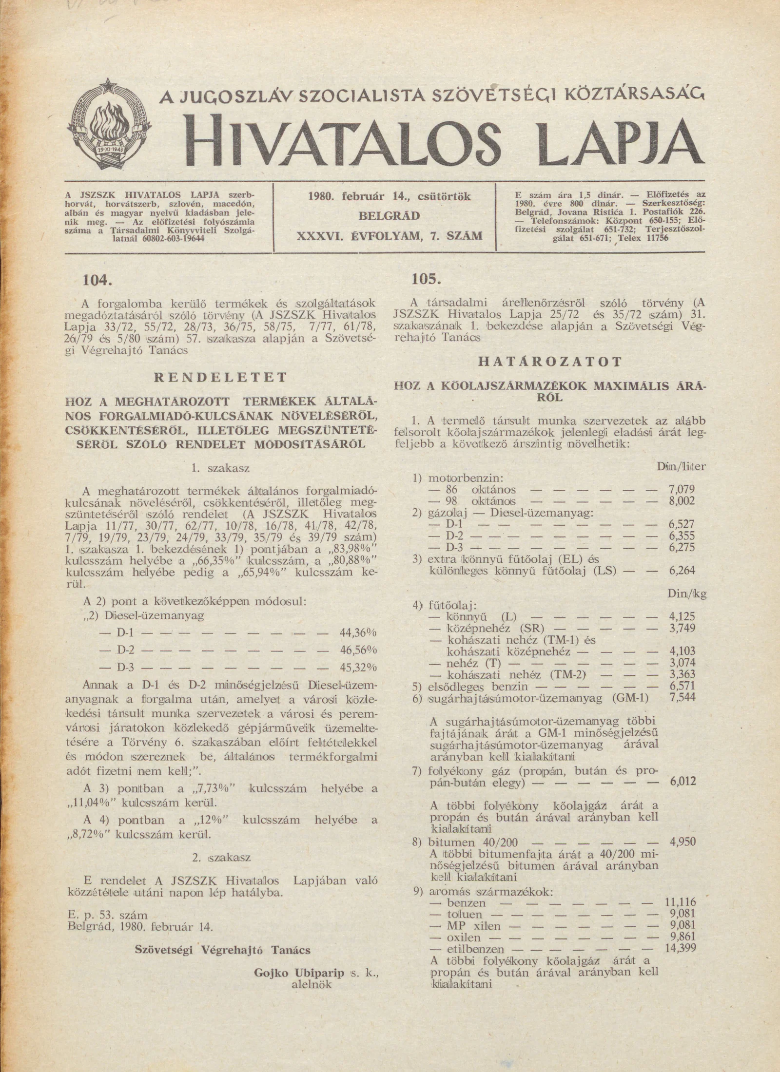 A Jugoszláv Szocialista Szövetségi Köztársaság Hivatalos Lapja, 36. évf. 1980. február 14. 7. sz. 221–224. oldal