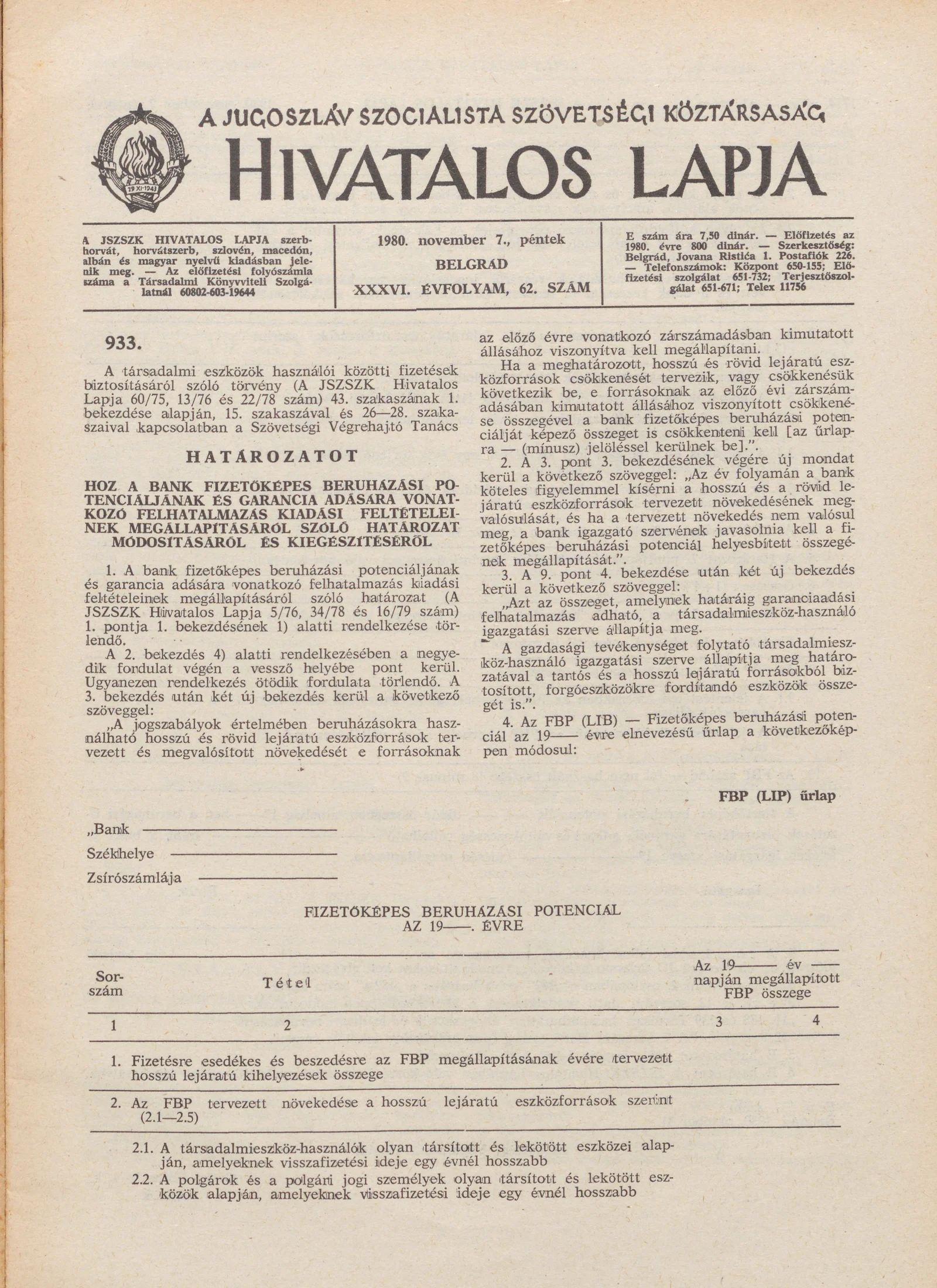 A Jugoszláv Szocialista Szövetségi Köztársaság Hivatalos Lapja, 36. évf. 1980. november 7. 62. sz. 1773–1792. oldal