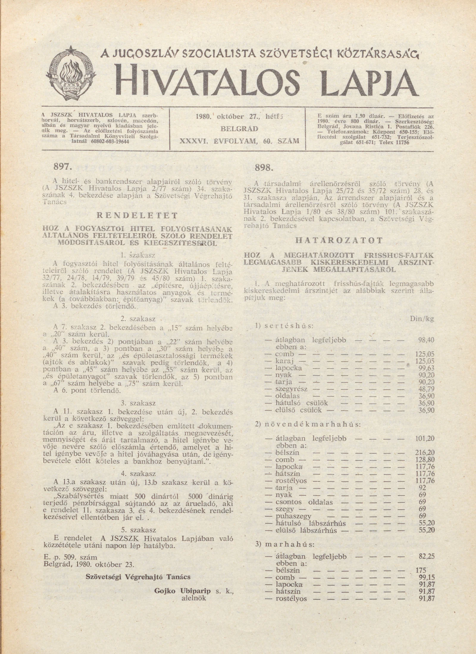 A Jugoszláv Szocialista Szövetségi Köztársaság Hivatalos Lapja, 36. évf. 1980. október 27. 60. sz. 1737–1740. oldal