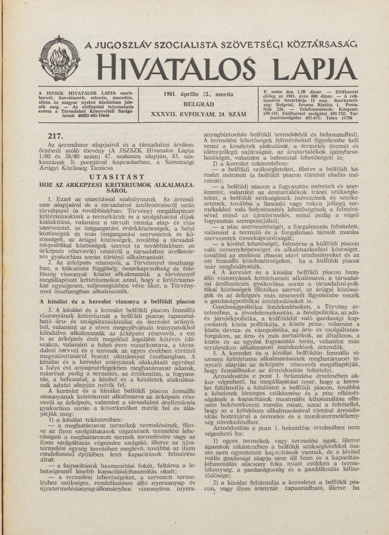 A Jugoszláv Szocialista Szövetségi Köztársaság Hivatalos Lapja, 37. évf. 1981. április 22. 24. sz. 573–576. oldal