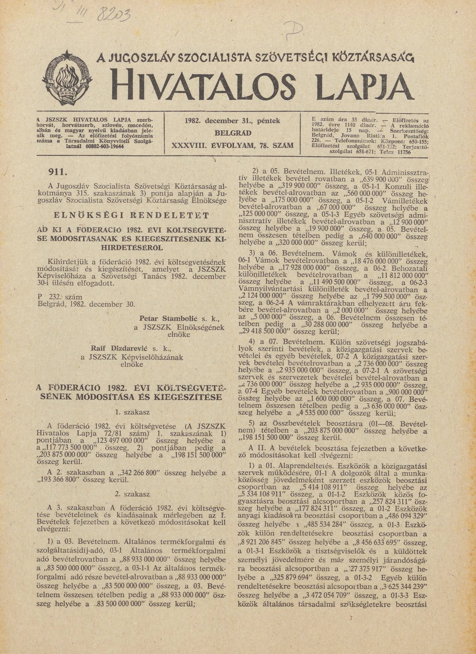 A Jugoszláv Szocialista Szövetségi Köztársaság Hivatalos Lapja, 38. évf. 1982. december 31. 78. sz. 1925–1980. oldal