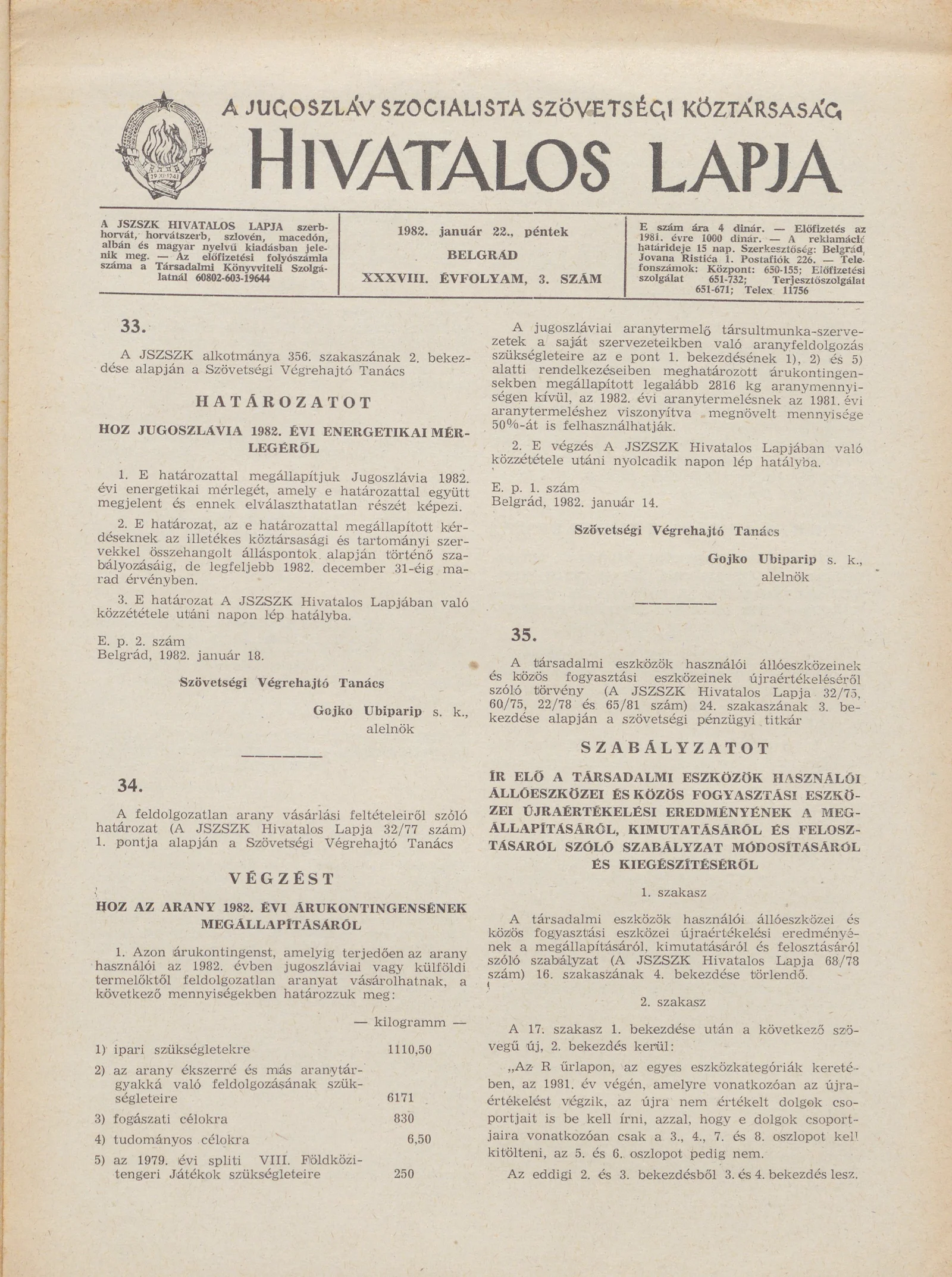 - Határozat Jugoszlávia 1982. évi energetikai mérlegéről77