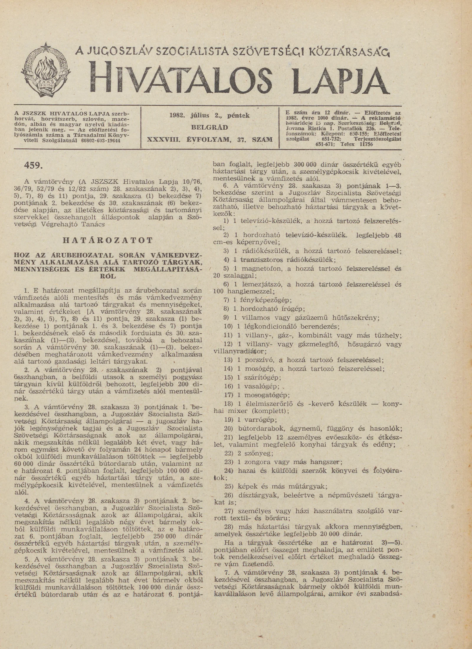 - Szabályzat a távközlés jugoszláv szabványairól1011