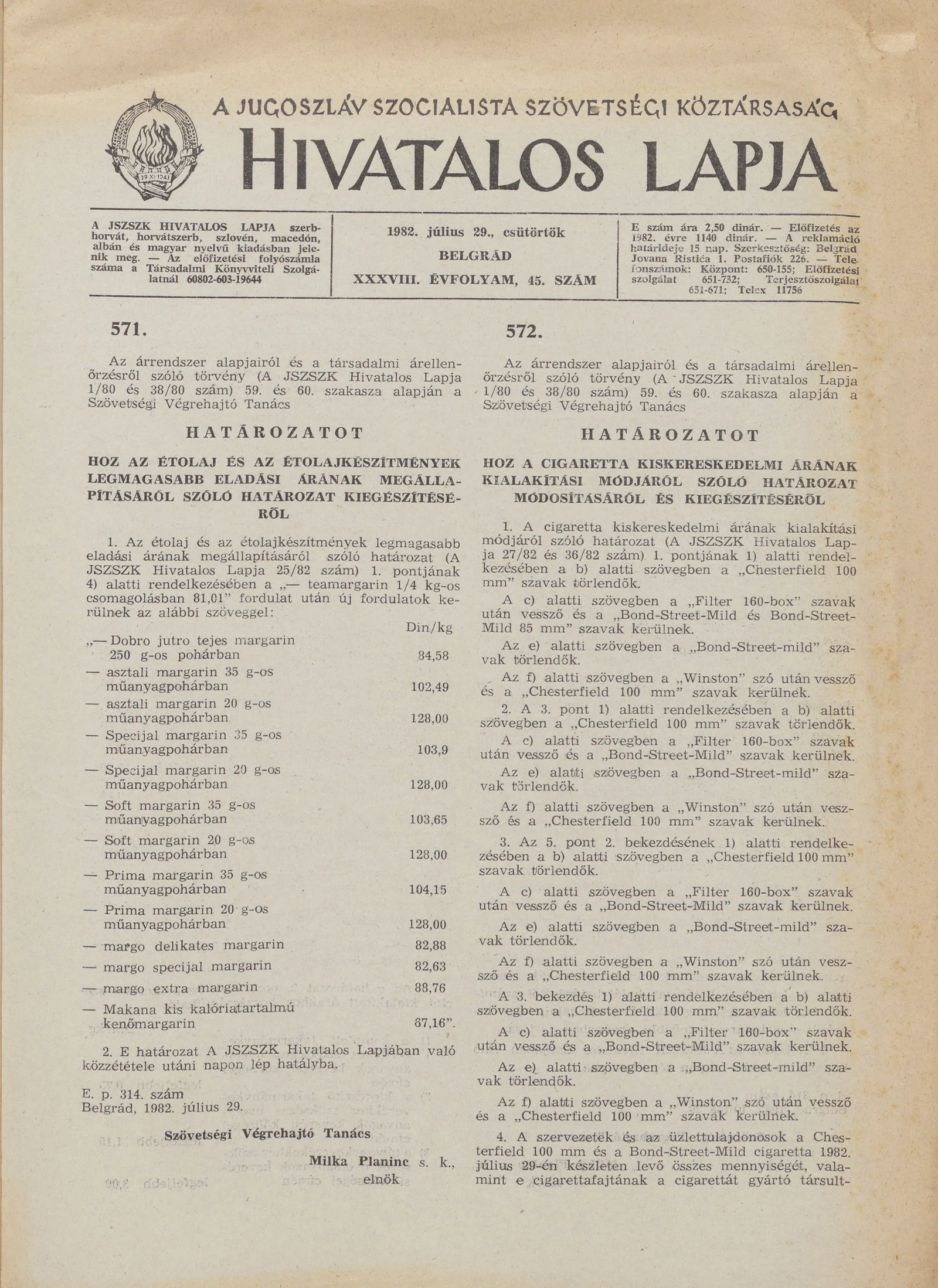 A Jugoszláv Szocialista Szövetségi Köztársaság Hivatalos Lapja, 38. évf. 1982. július 29. 45. sz. 1185–1188. oldal