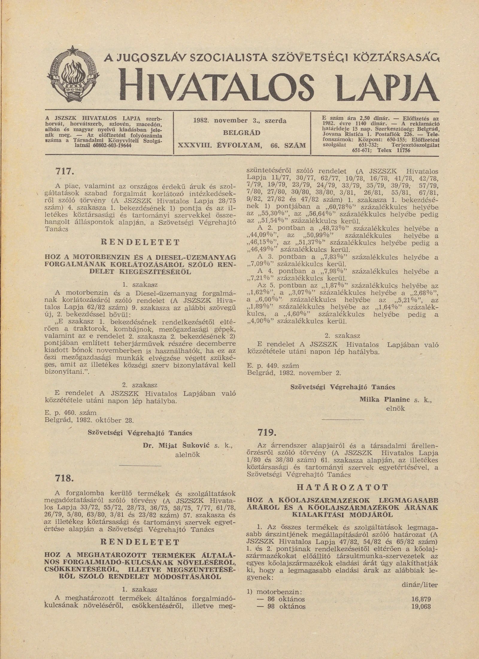 A Jugoszláv Szocialista Szövetségi Köztársaság Hivatalos Lapja, 38. évf. 1982. november 3. 66. sz. 1561–1564. oldal