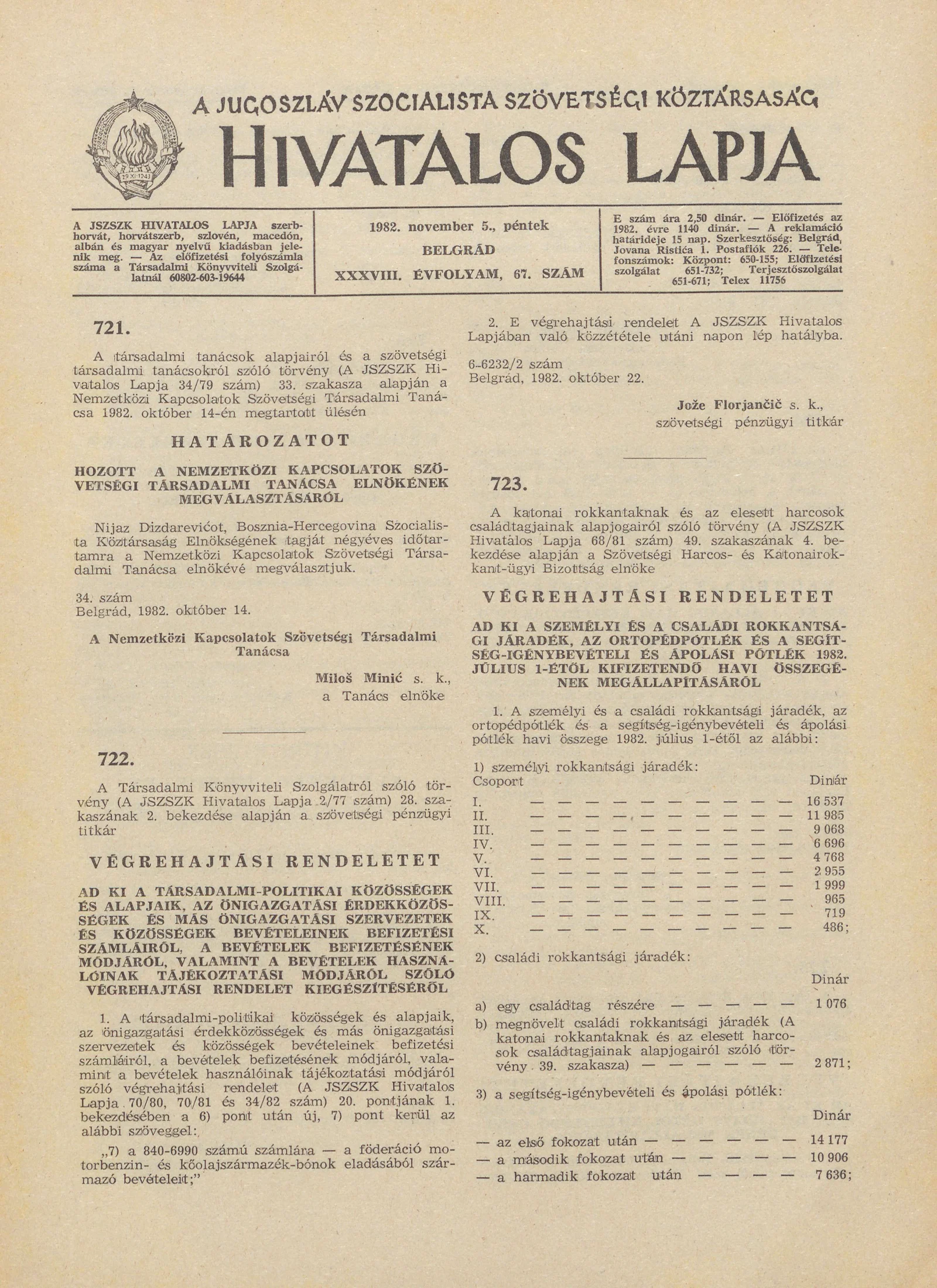A Jugoszláv Szocialista Szövetségi Köztársaság Hivatalos Lapja, 38. évf. 1982. november 5. 67. sz. 1565–1568. oldal