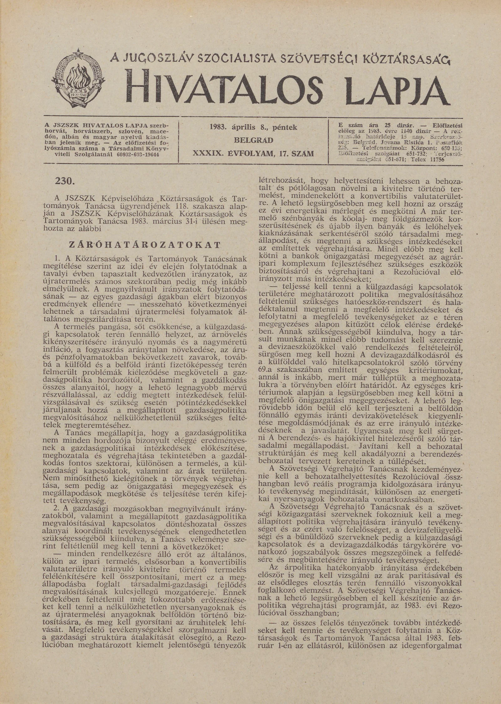 - Záróhatározatai a Köztársaságok és Tartományok Tanácsának az év elején tapasztalható gazdasági mozgásokról 373