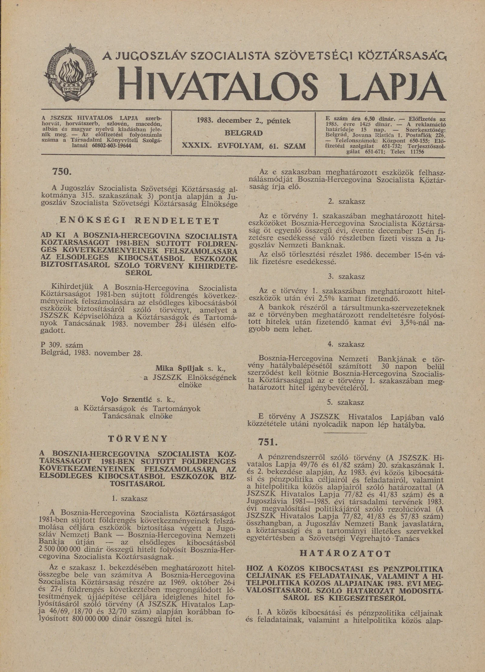 - A Jugoszláv Szocialista Szövetségi Köztársaság Hivatalos Lapja