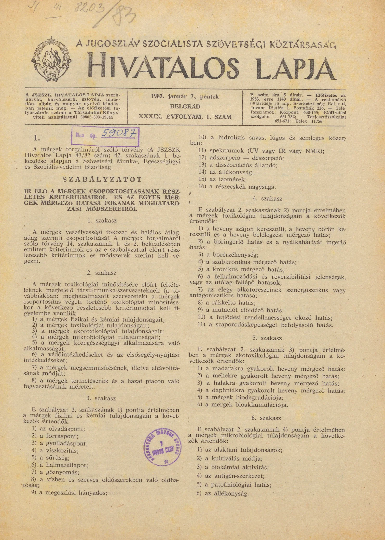 A Jugoszláv Szocialista Szövetségi Köztársaság Hivatalos Lapja, 39. évf. 1983. január 7. 1. sz. 1–8. oldal