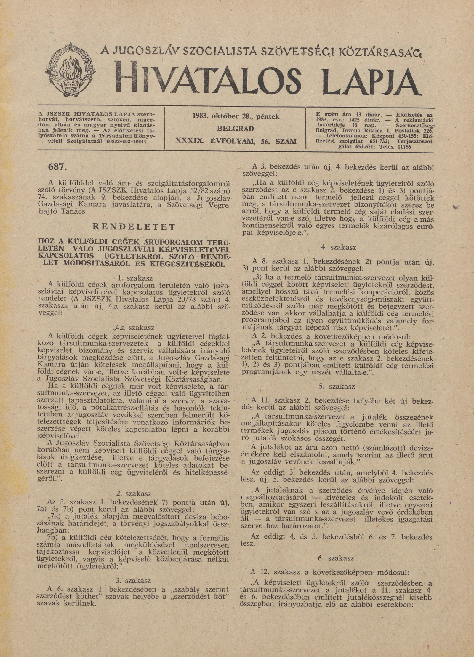 A Jugoszláv Szocialista Szövetségi Köztársaság Hivatalos Lapja, 39. évf. 1983. október 28. 56. sz. 1565–1580. oldal