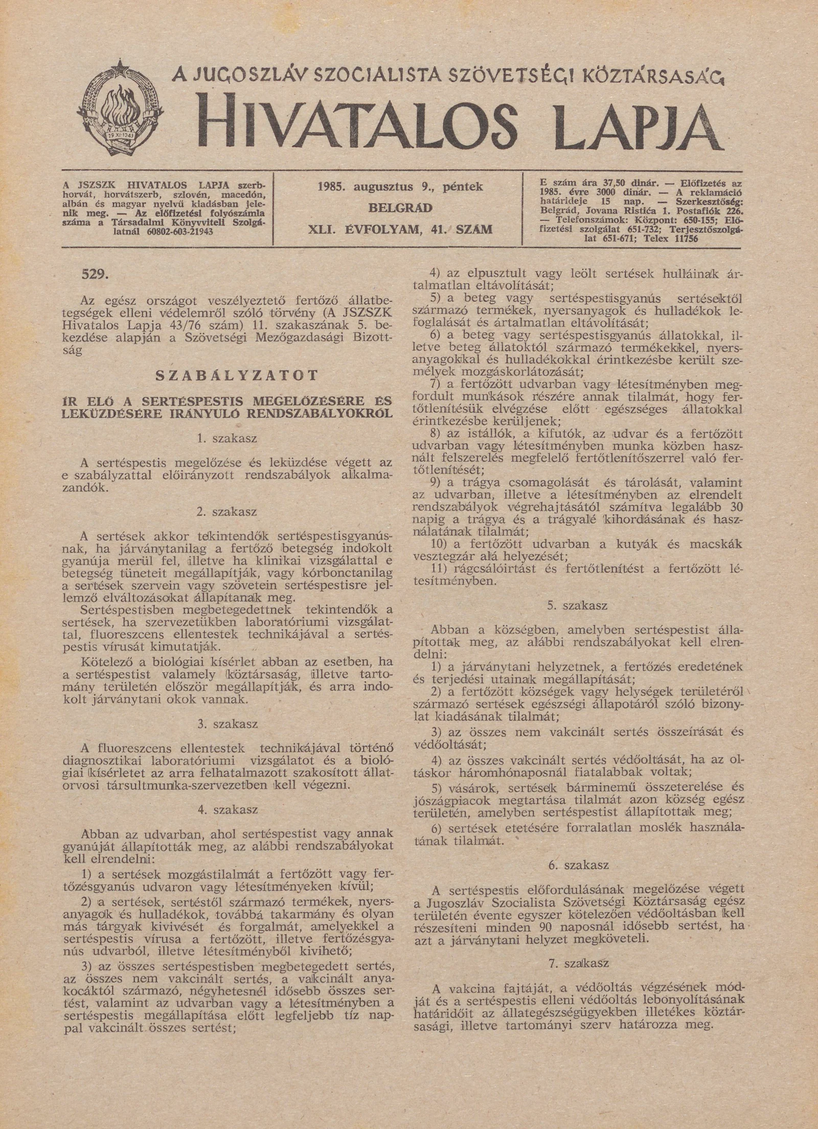 A Jugoszláv Szocialista Szövetségi Köztársaság Hivatalos Lapja, 41. évf. 1985. augusztus 9. 41. sz. 1245–1264. oldal