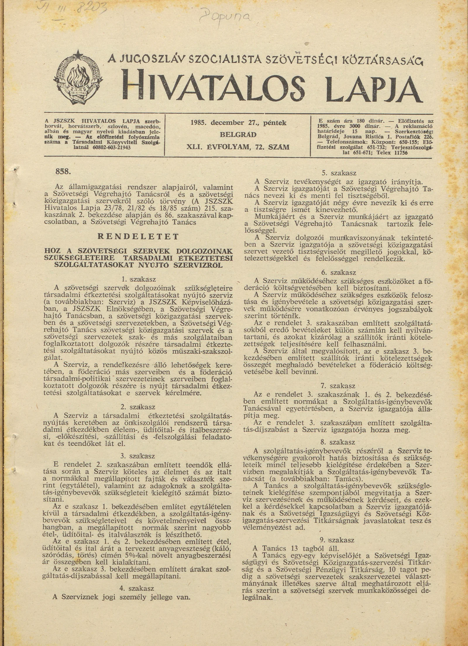 - Határozat a társultmunka-szervezetek és más társadalmi jogi személyek által devizaellenőrzés végett kötelezően benyújtandó okmányokról és az okmányok benyújtásának határidejéről 2029