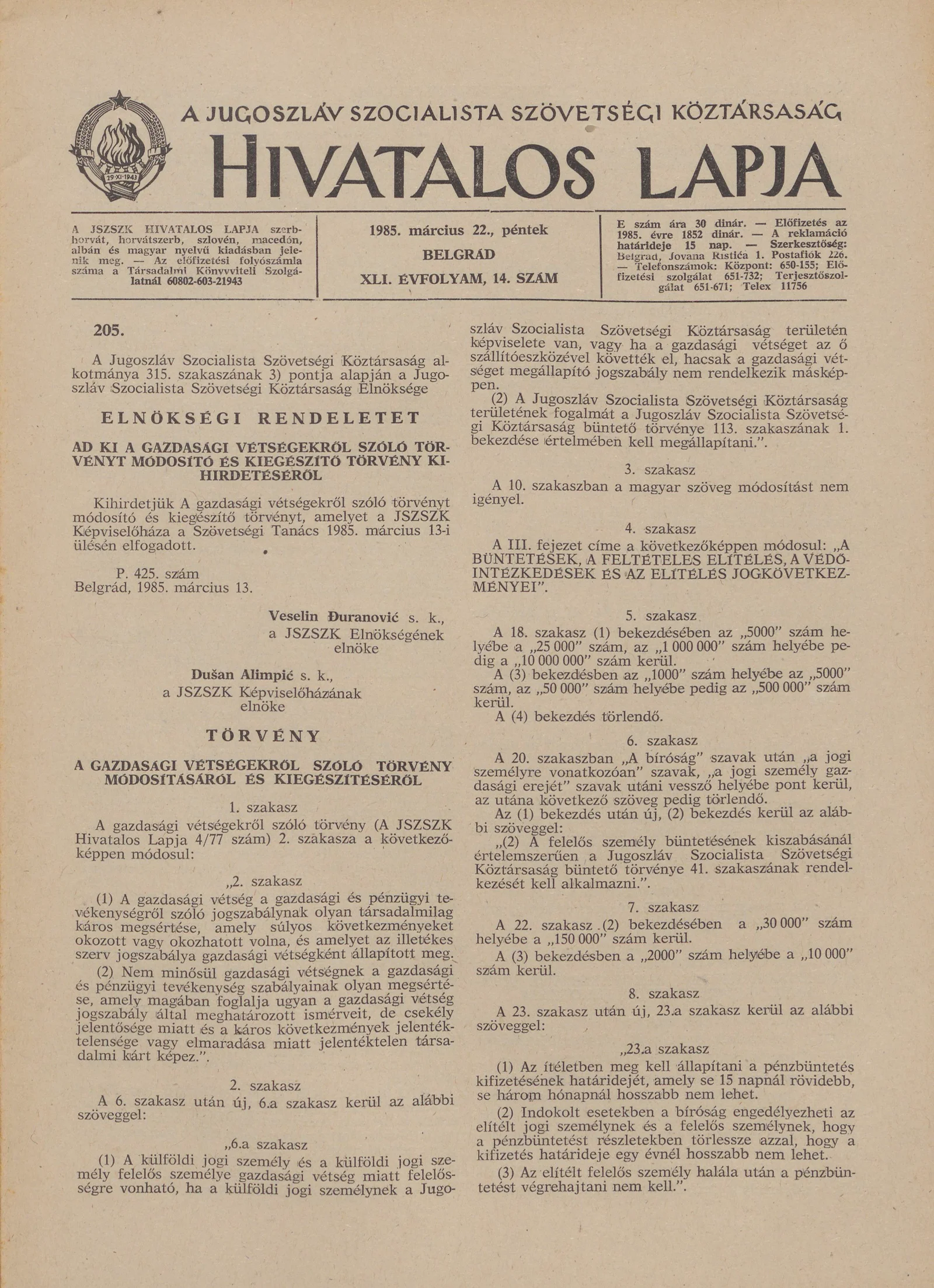 - Végrehajtási rendelet élő sertés és sertéstől származó termékek, nyersanyagok és hulladékok Belga Királyságból a Jugoszláv Szocialista Szövetségi Köztársaságba való behozatalának és Jugoszláv Szocialista Szövetségi Köztársaság területén való átszál...623