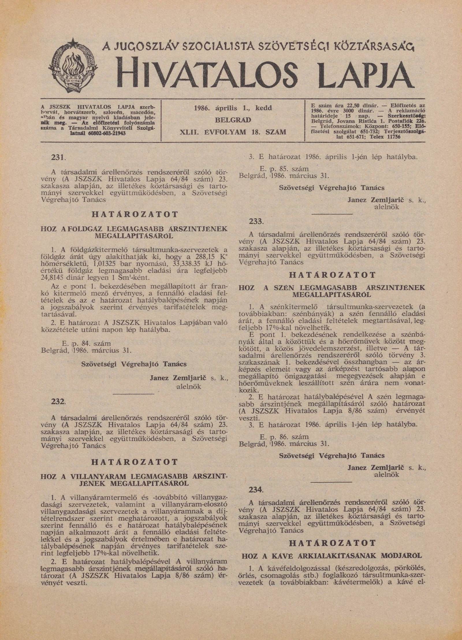 A Jugoszláv Szocialista Szövetségi Köztársaság Hivatalos Lapja, 42. évf. 1986. április 1. 18. sz. 461–476. oldal