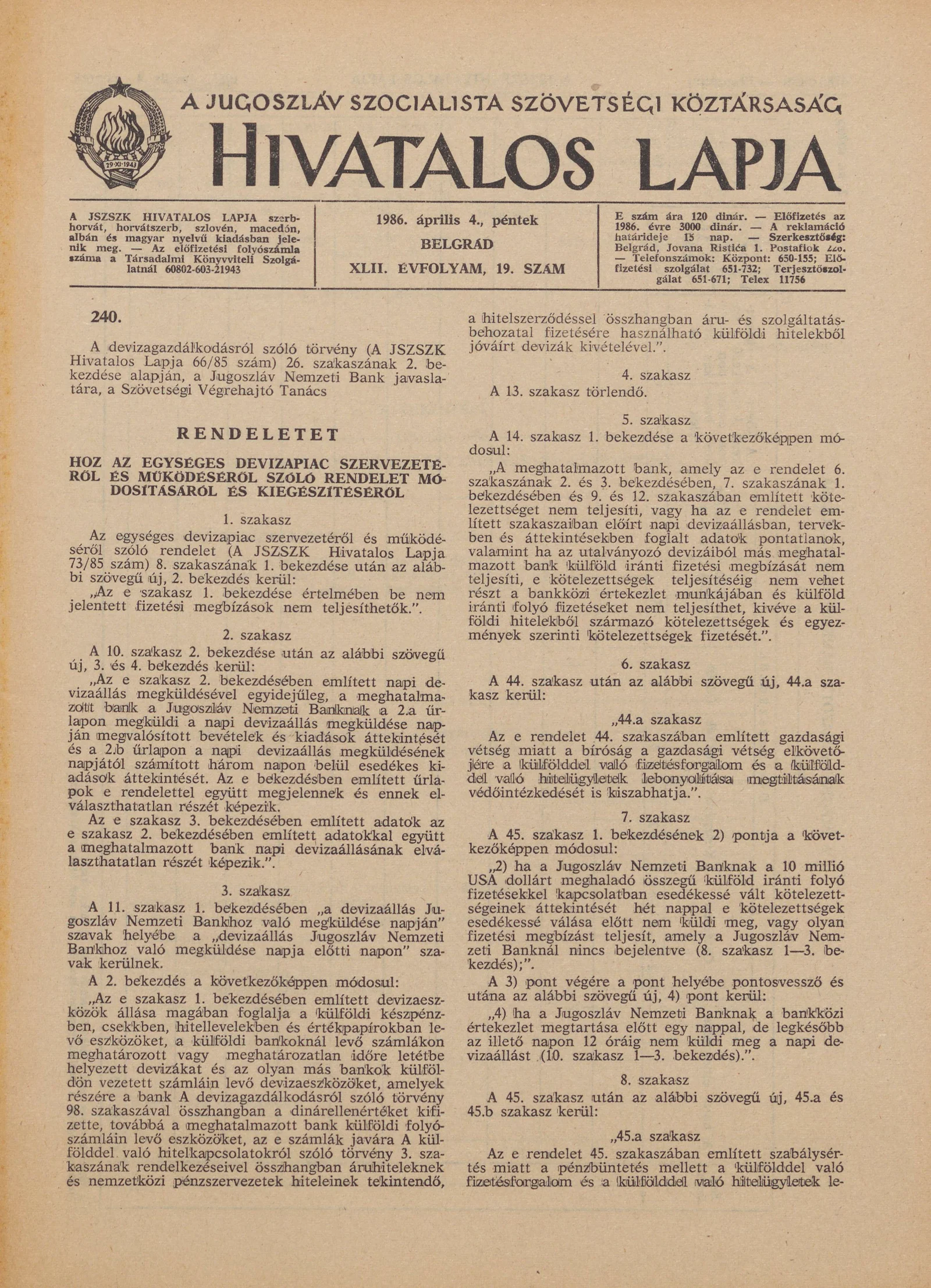 A Jugoszláv Szocialista Szövetségi Köztársaság Hivatalos Lapja, 42. évf. 1986. április 4. 19. sz. 477–540. oldal