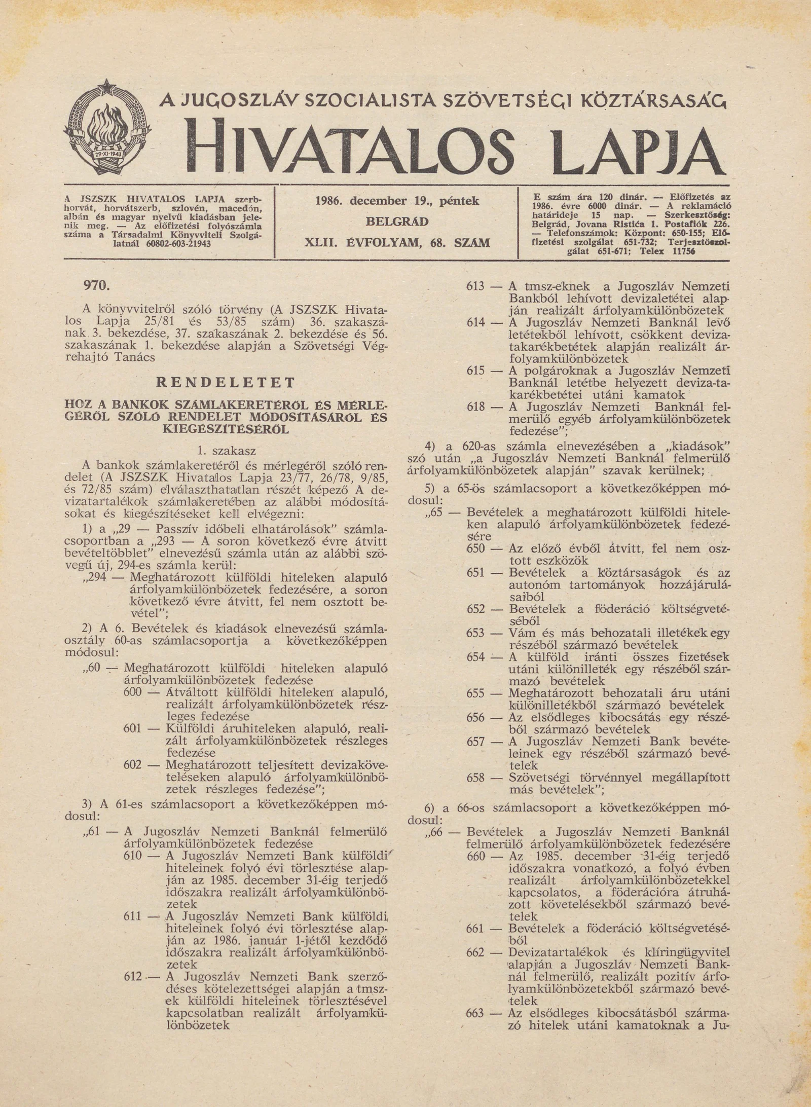 A Jugoszláv Szocialista Szövetségi Köztársaság Hivatalos Lapja, 42. évf. 1986. december 19. 67. sz. 2029–2040. oldal