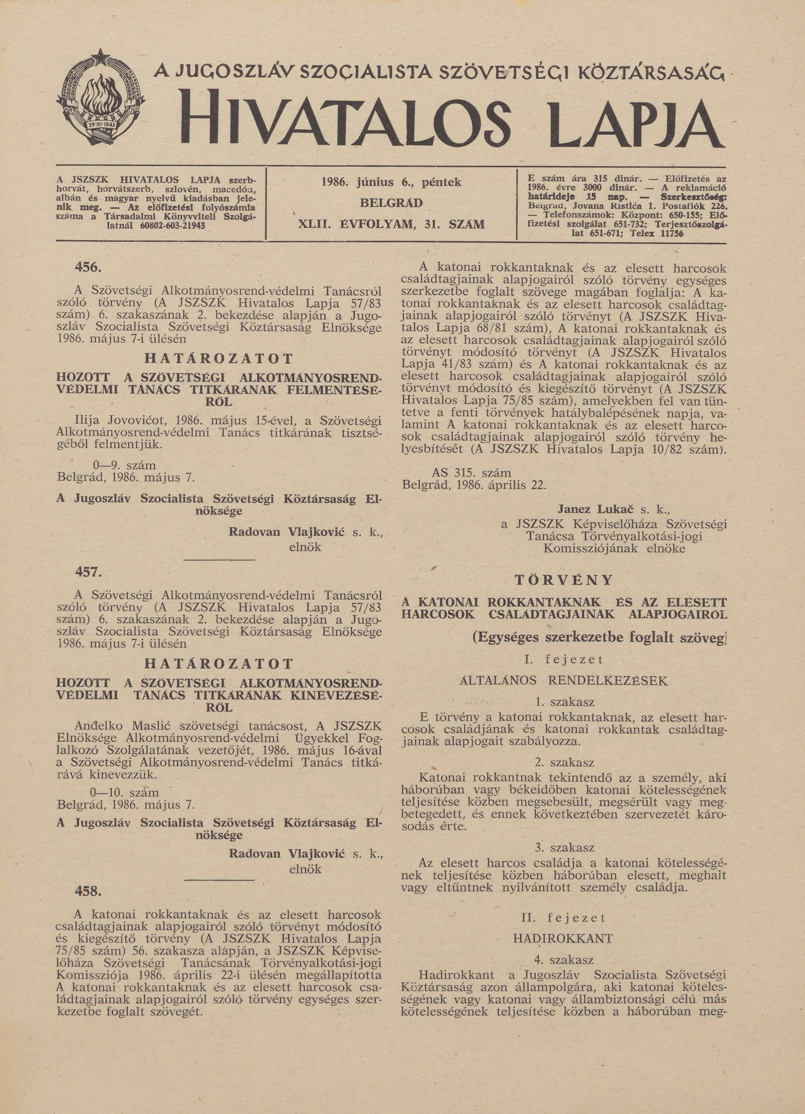 - A Jugoszláv Szocialista Szövetségi Köztársaság Hivatalos Lapja