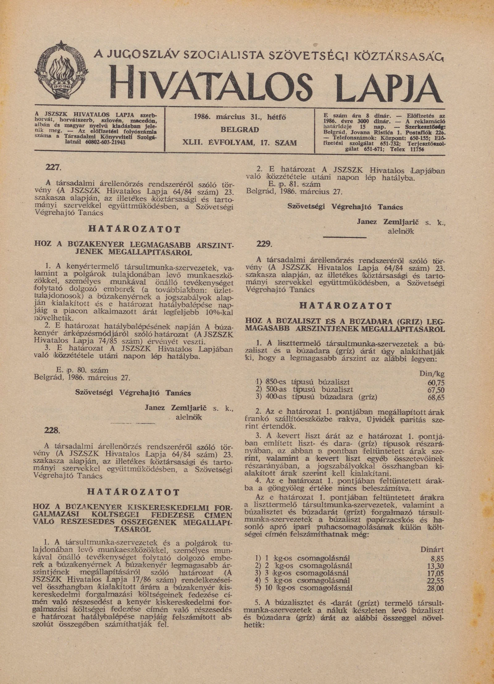 A Jugoszláv Szocialista Szövetségi Köztársaság Hivatalos Lapja, 42. évf. 1986. március 31. 17. sz. 457–459. oldal