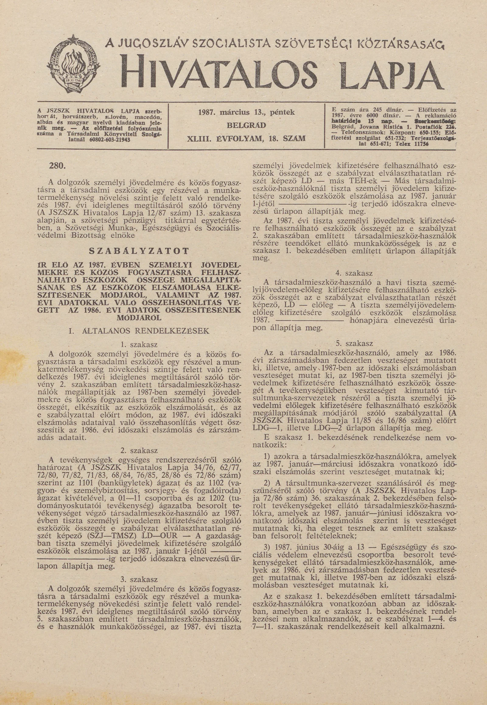 - Szabályzat az 1987. évben személyi jövedelmekre és közös fogyasztásra felhasználható eszközök összege megállapításának és az eszközök elszámolása elkészítésének módjáról, valamint az 1987. évi adatokkal való összehasonlítás végett az 1986. évi adat...509