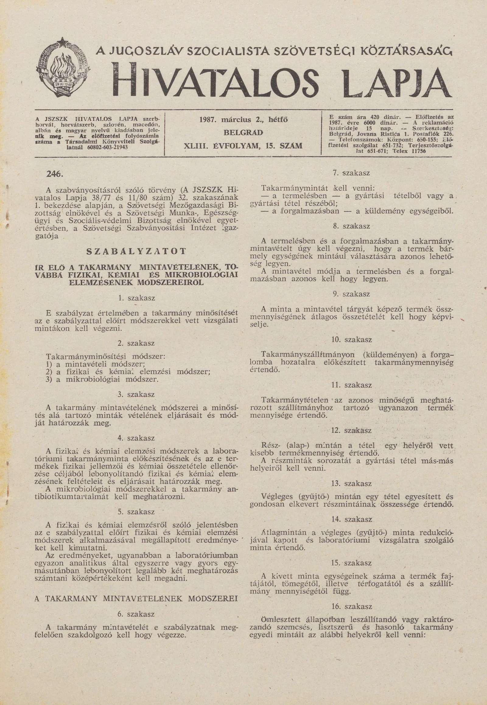 A Jugoszláv Szocialista Szövetségi Köztársaság Hivatalos Lapja, 43. évf. 1987. március 2. 15. sz. 421–468. oldal