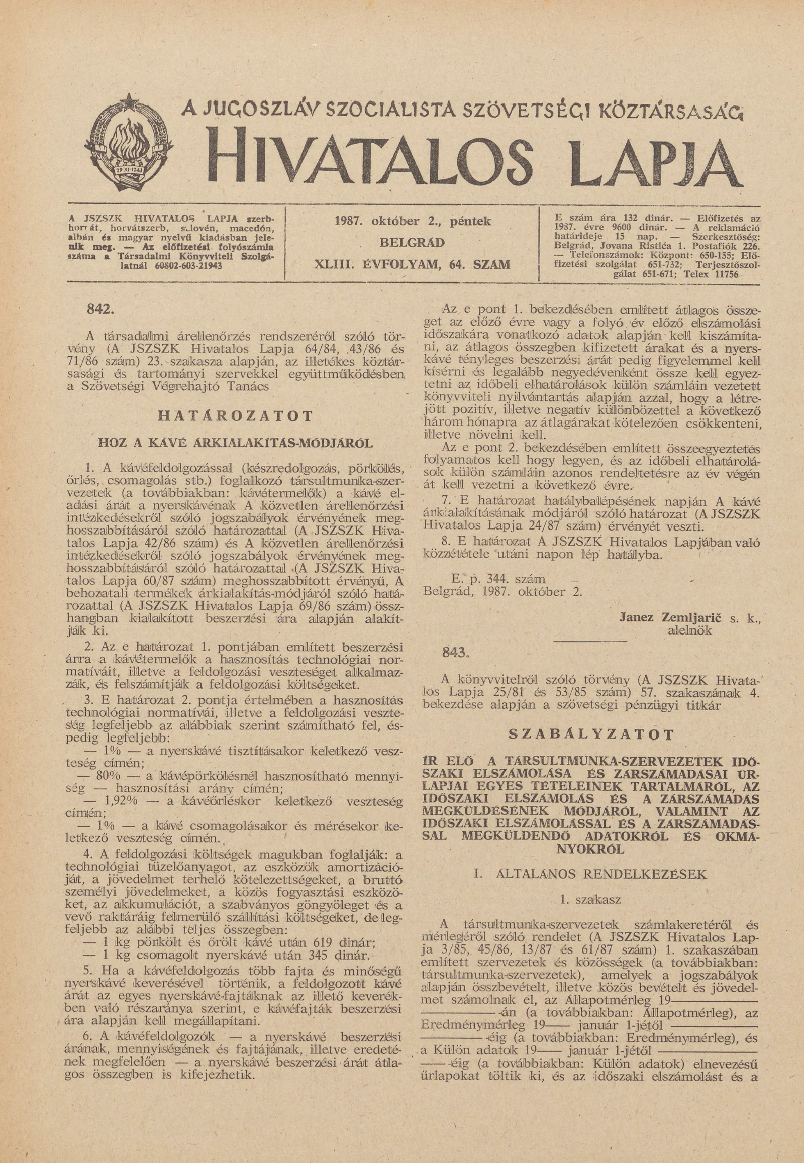 A Jugoszláv Szocialista Szövetségi Köztársaság Hivatalos Lapja, 43. évf. 1987. október 2. 64. sz. 1501–1512. oldal