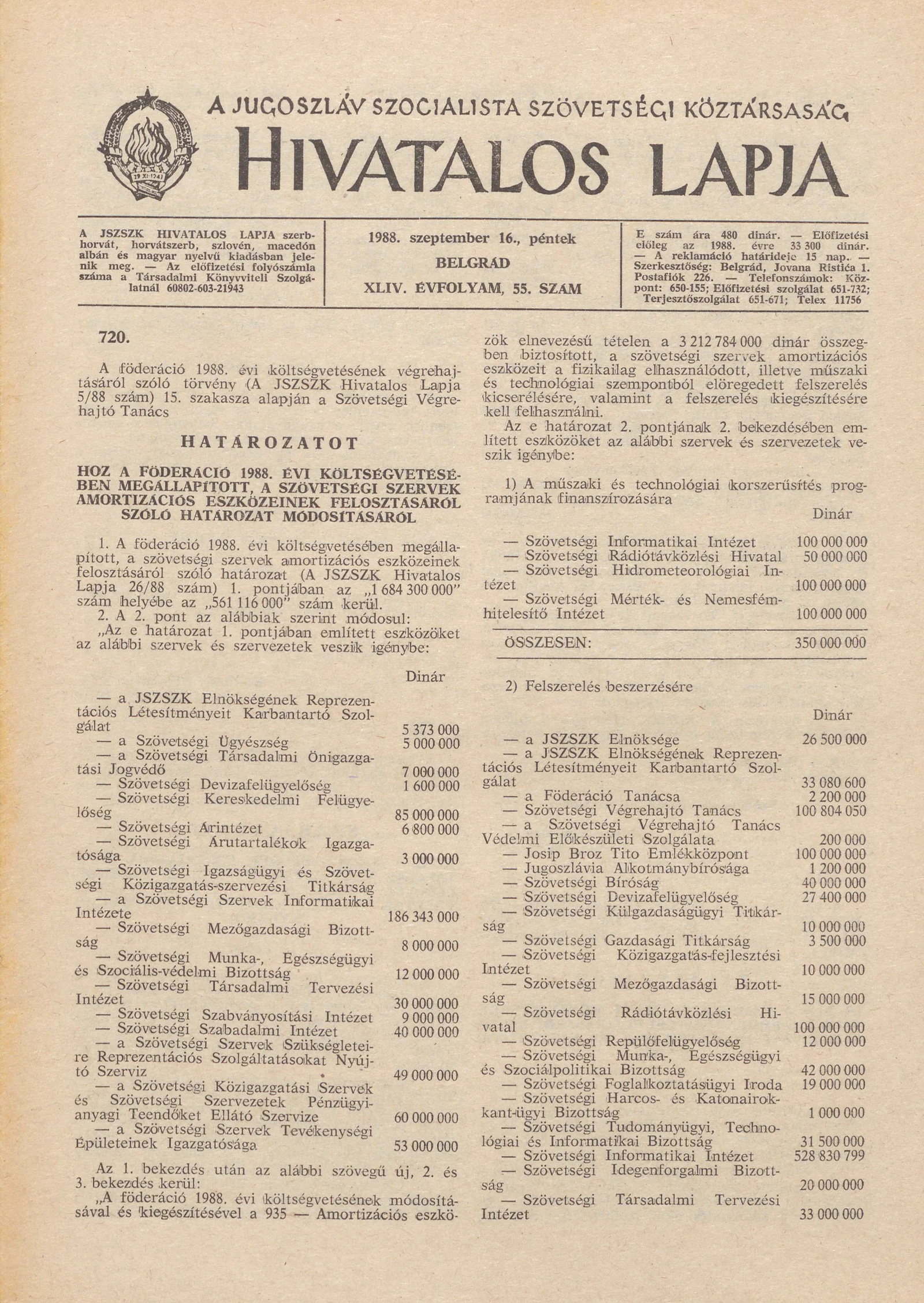 A Jugoszláv Szocialista Szövetségi Köztársaság Hivatalos Lapja, 44. évf. 1988. szeptember 16. 55. sz. 1477–1488. oldal