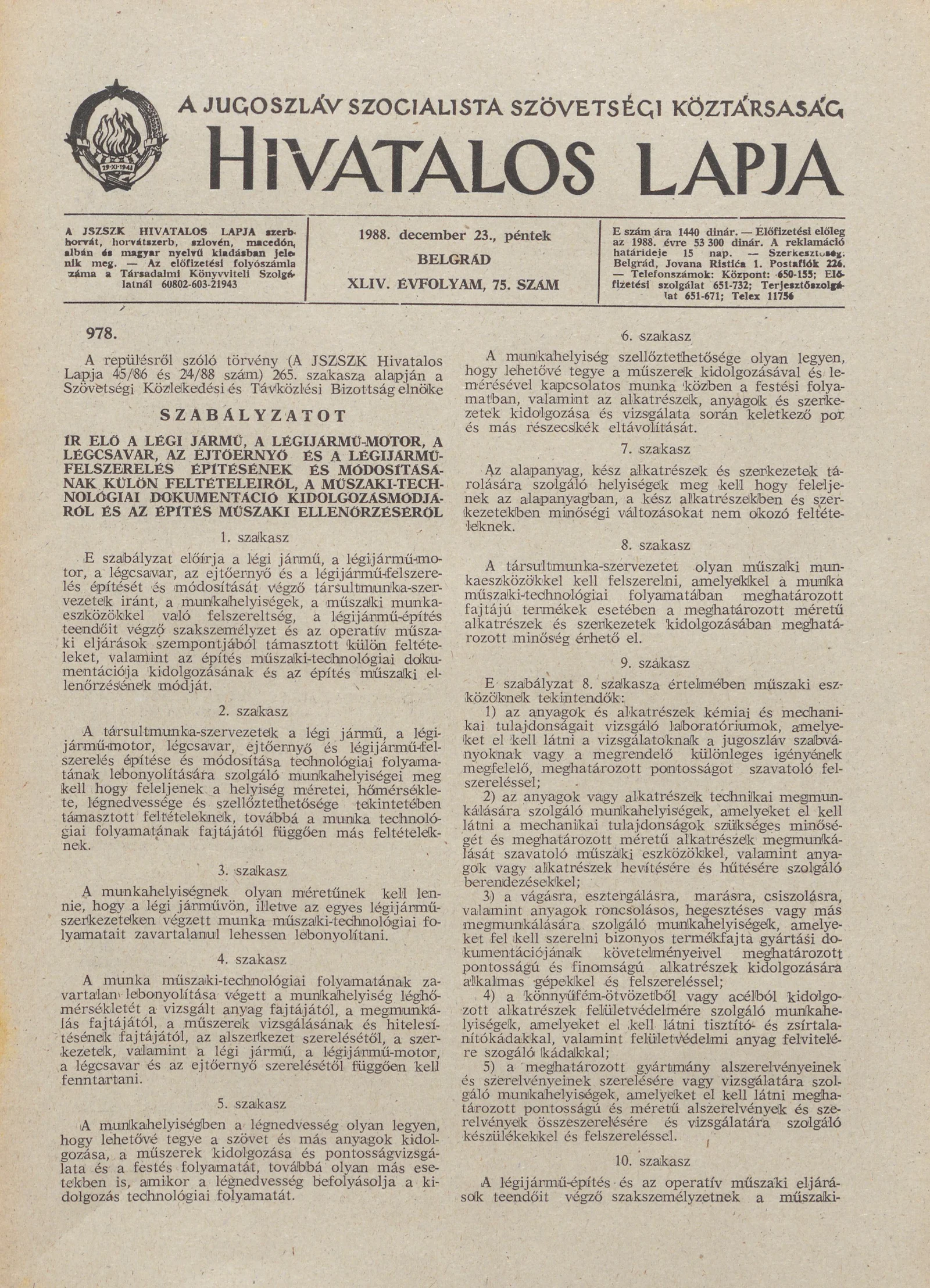 A Jugoszláv Szocialista Szövetségi Köztársaság Hivatalos Lapja, 44. évf. 1988. december 23. 75. sz. 1893–1916. oldal