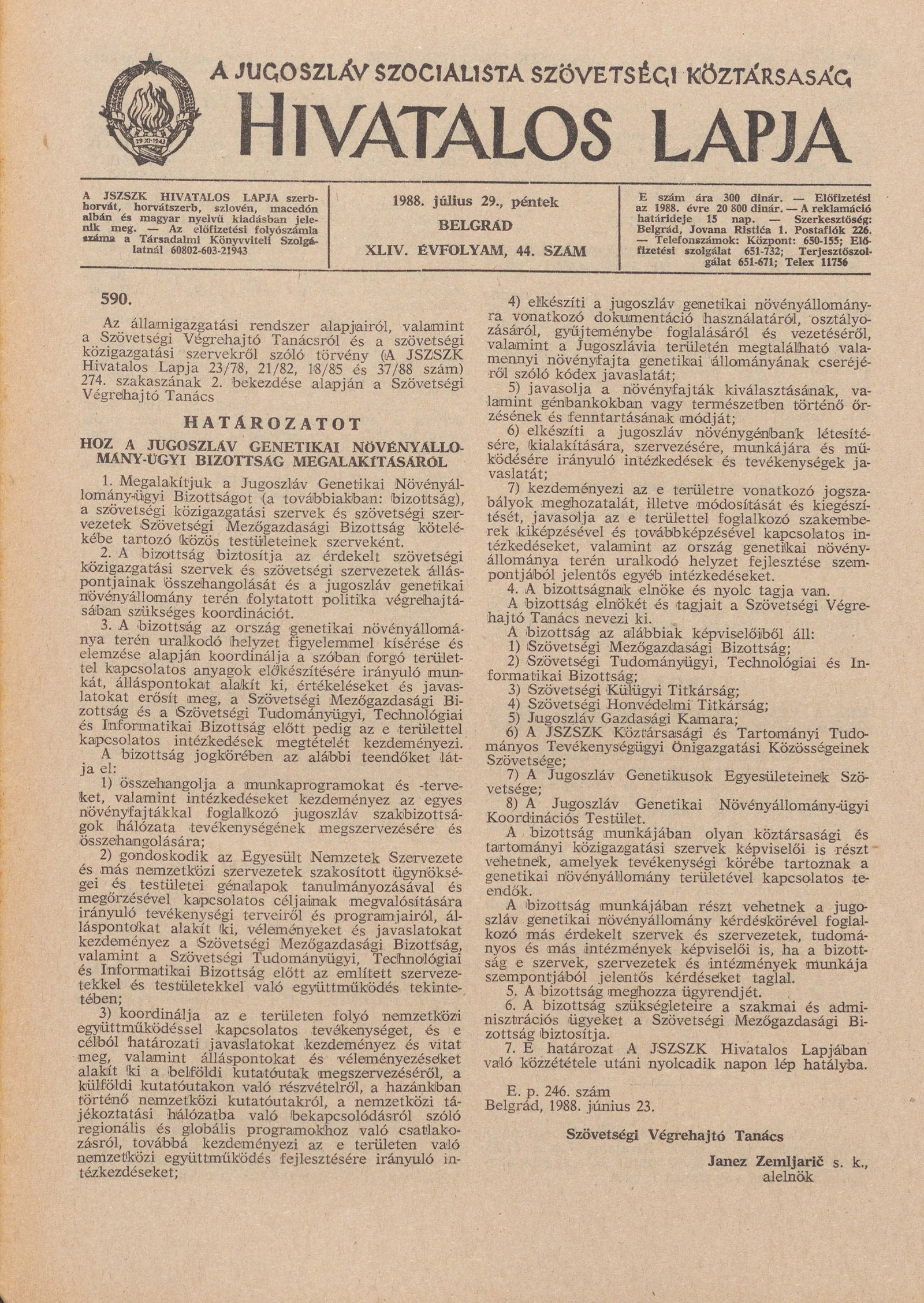 - Határozat a Jugoszláv Genetikai Növényállomány-ügyi Bizottság megalakításáról1225