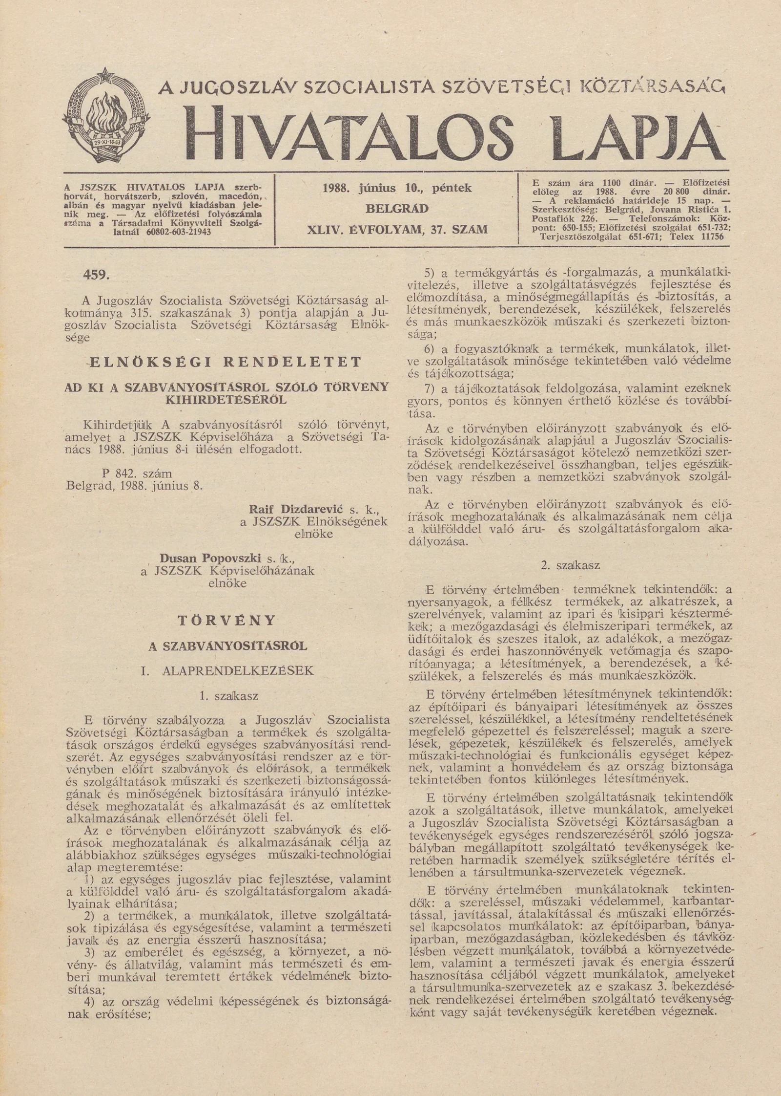 - Határozat A Jugoszláv Nemzeti Bank pénztárjegyeinek kibocsátásáról szóló határozat módosításáról1048