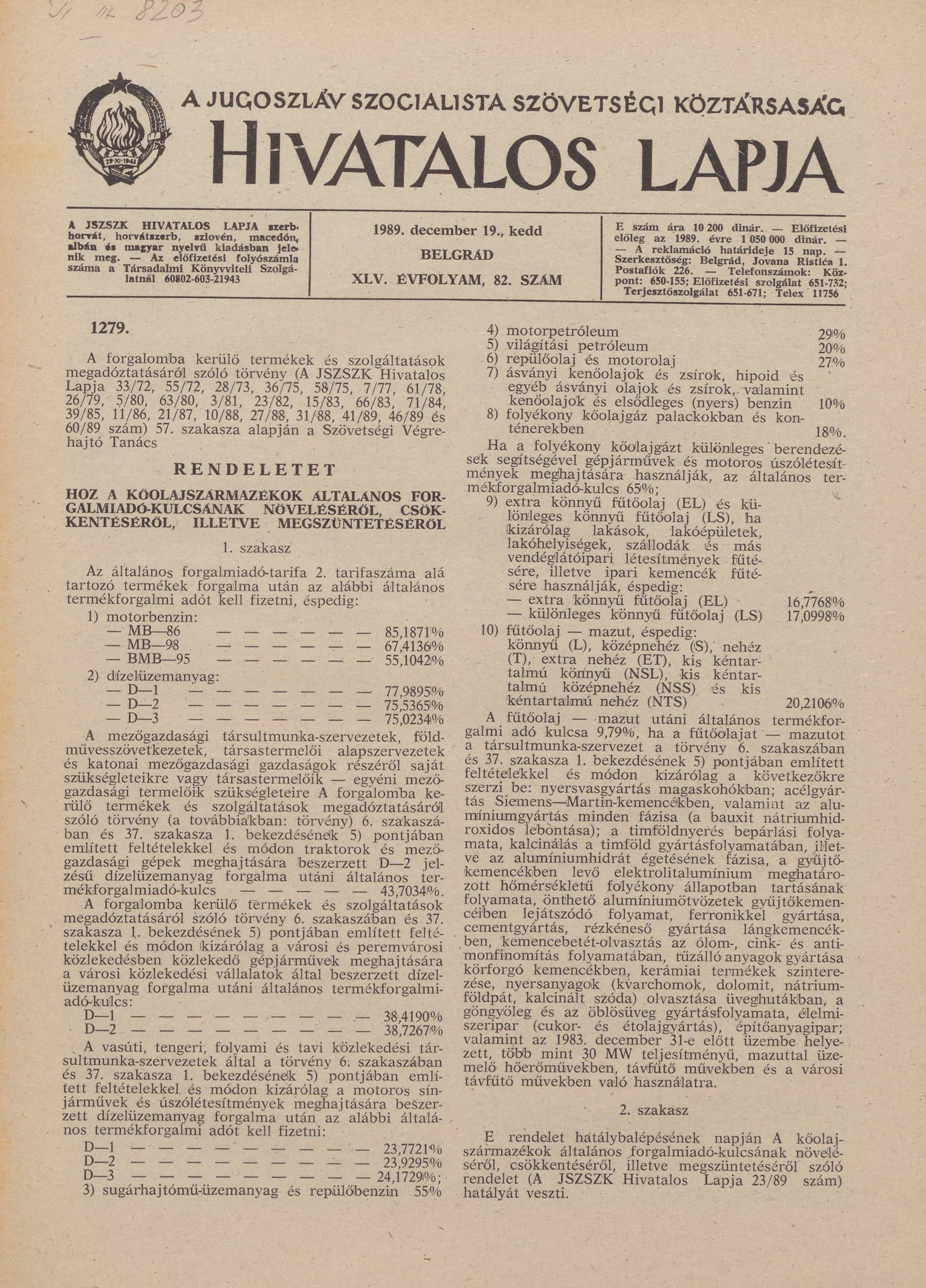 A Jugoszláv Szocialista Szövetségi Köztársaság Hivatalos Lapja, 45. évf. 1989. december 19. 82. sz. 2025–2032. oldal