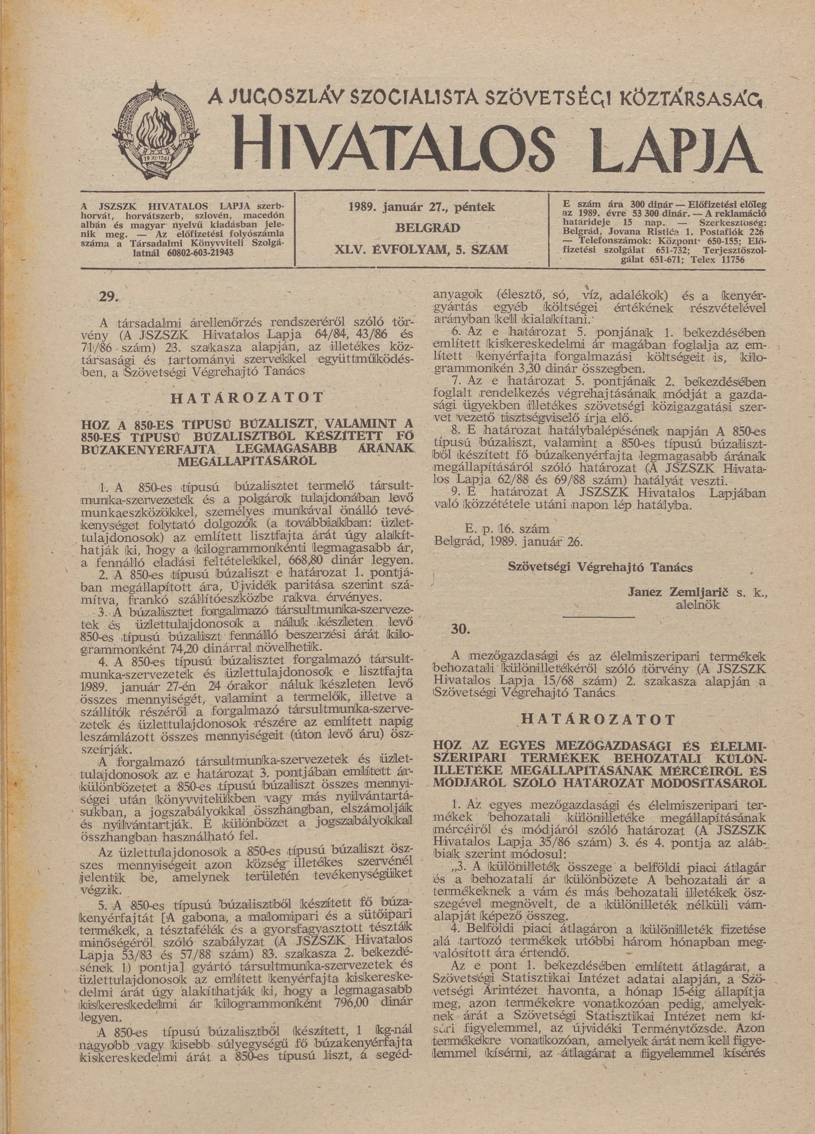 A Jugoszláv Szocialista Szövetségi Köztársaság Hivatalos Lapja, 45. évf. 1989. január 27. 5. sz. 181–184. oldal