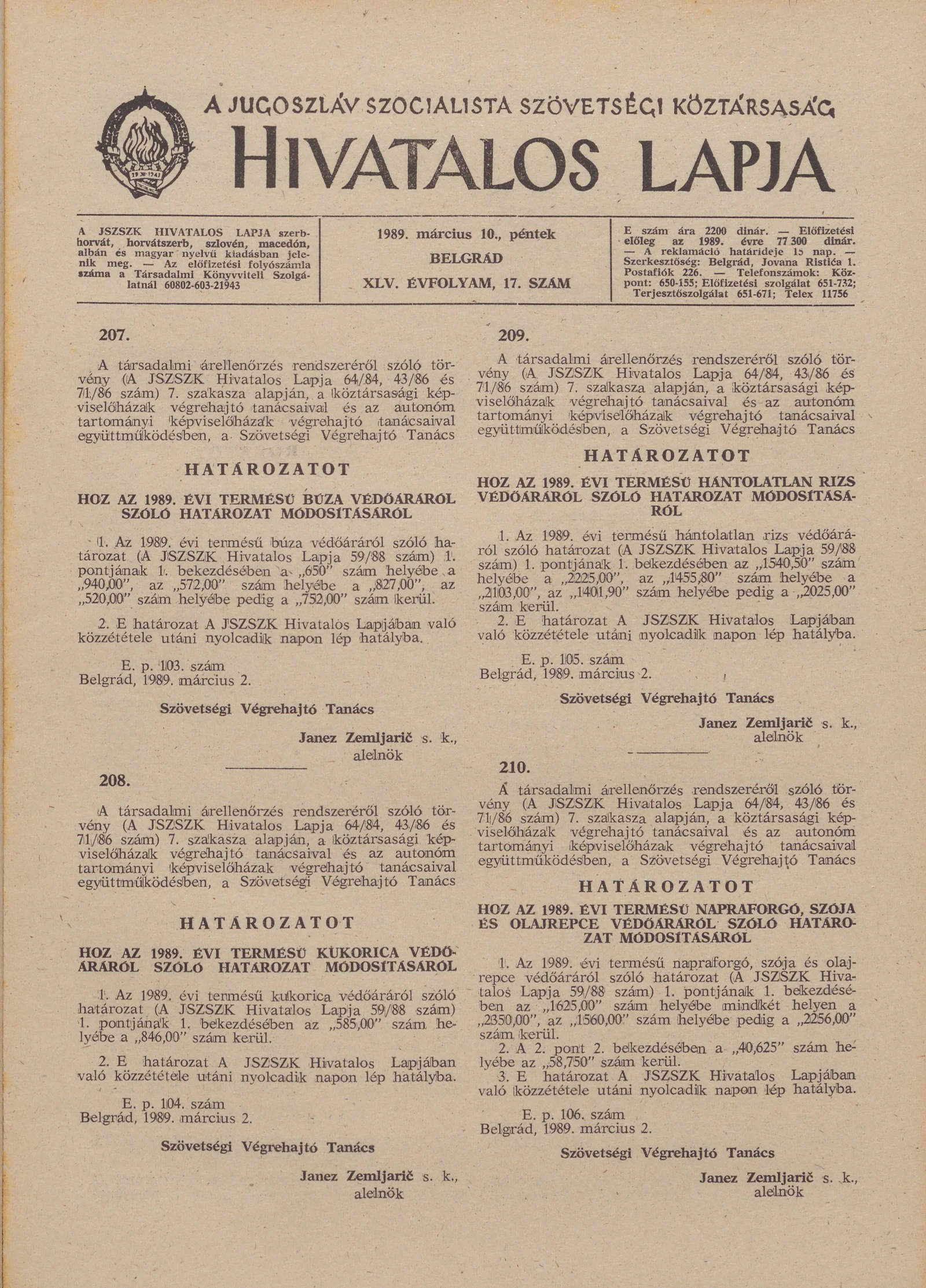 A Jugoszláv Szocialista Szövetségi Köztársaság Hivatalos Lapja, 45. évf. 1989. március 10. 17. sz. 437–460. oldal