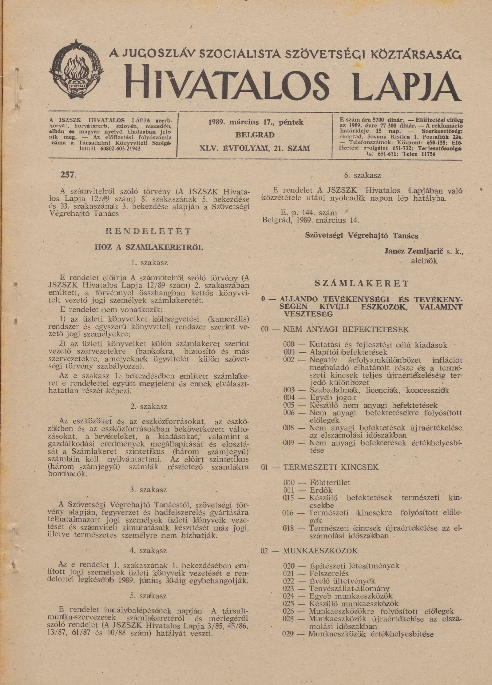 A Jugoszláv Szocialista Szövetségi Köztársaság Hivatalos Lapja, 45. évf. 1989. március 17. 21. sz. 505–568. oldal