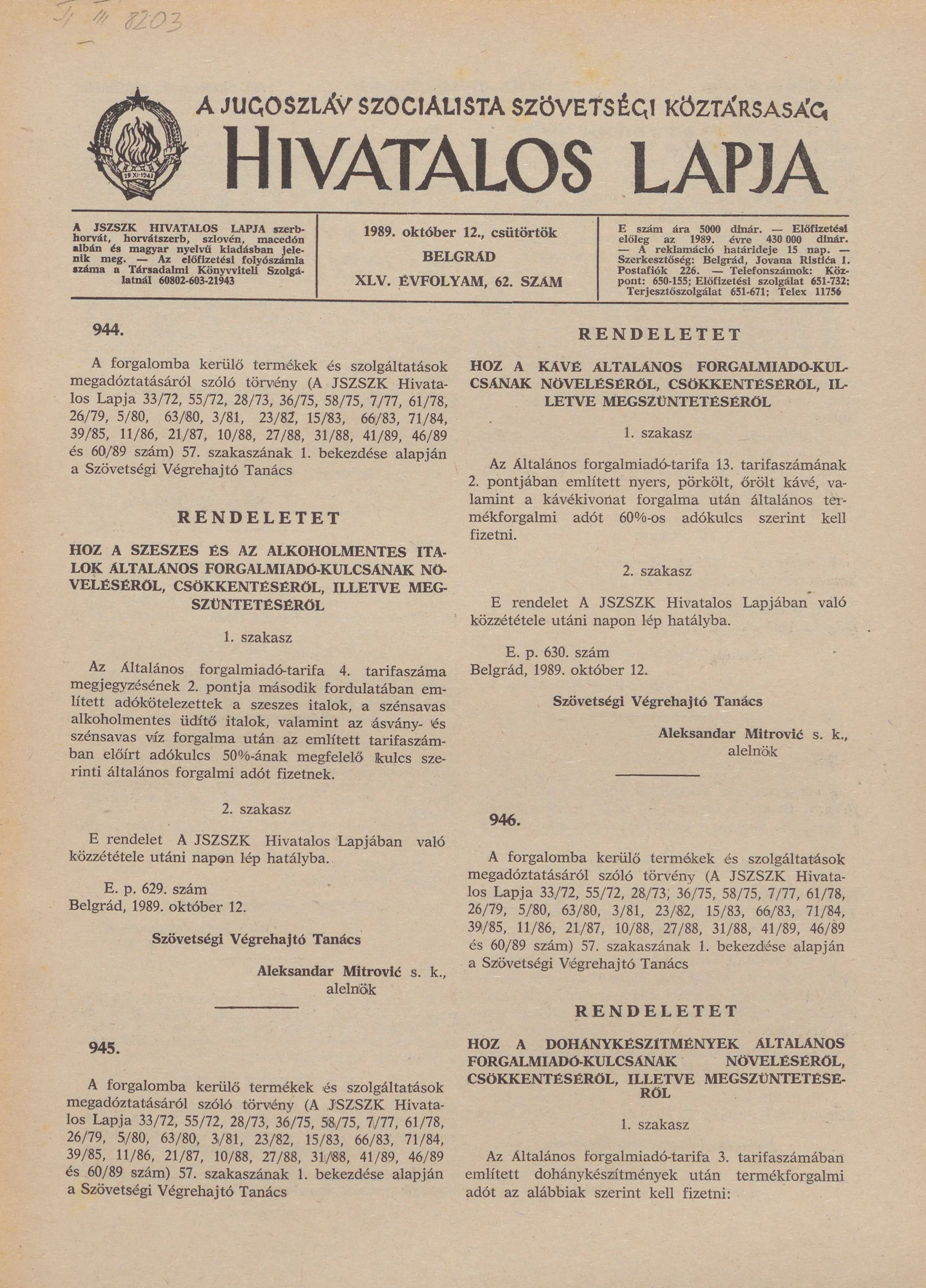- Rendelet a kávé általános forgalmiadó-kulcsának növeléséről, csökkentéséről, illetve megszüntetéséről 1537