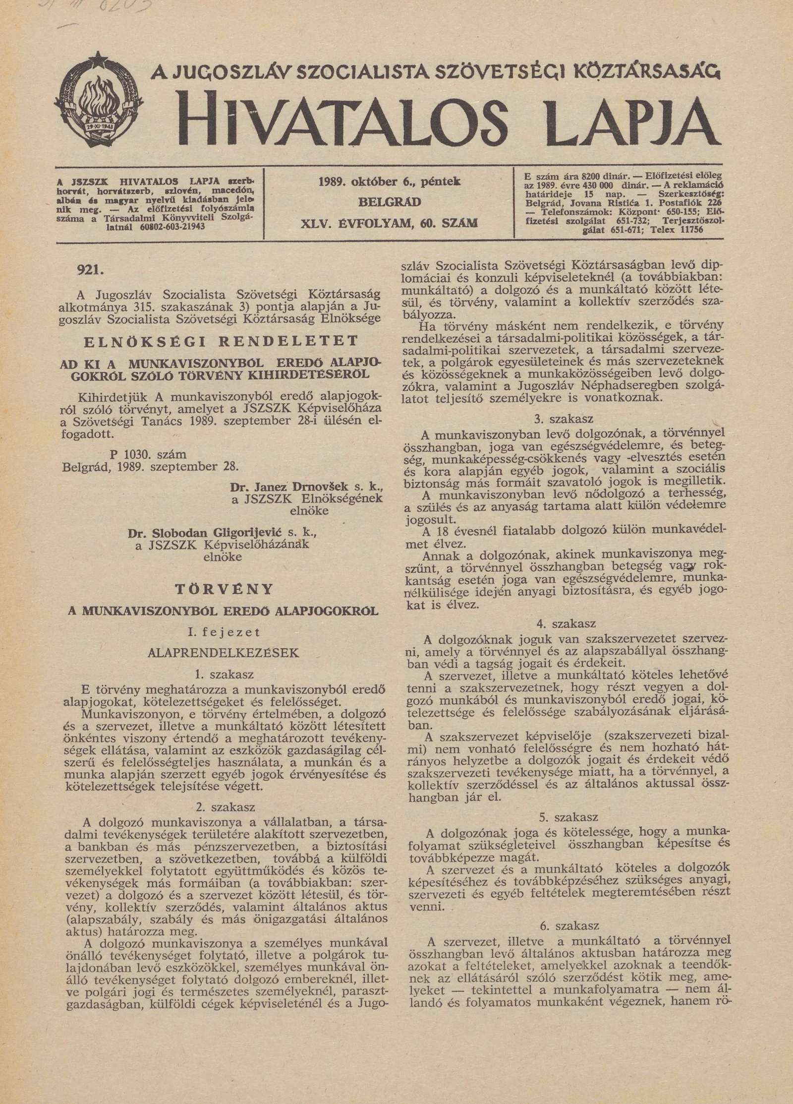 A Jugoszláv Szocialista Szövetségi Köztársaság Hivatalos Lapja, 45. évf. 1989. október 6. 60. sz. 1469–1492. oldal