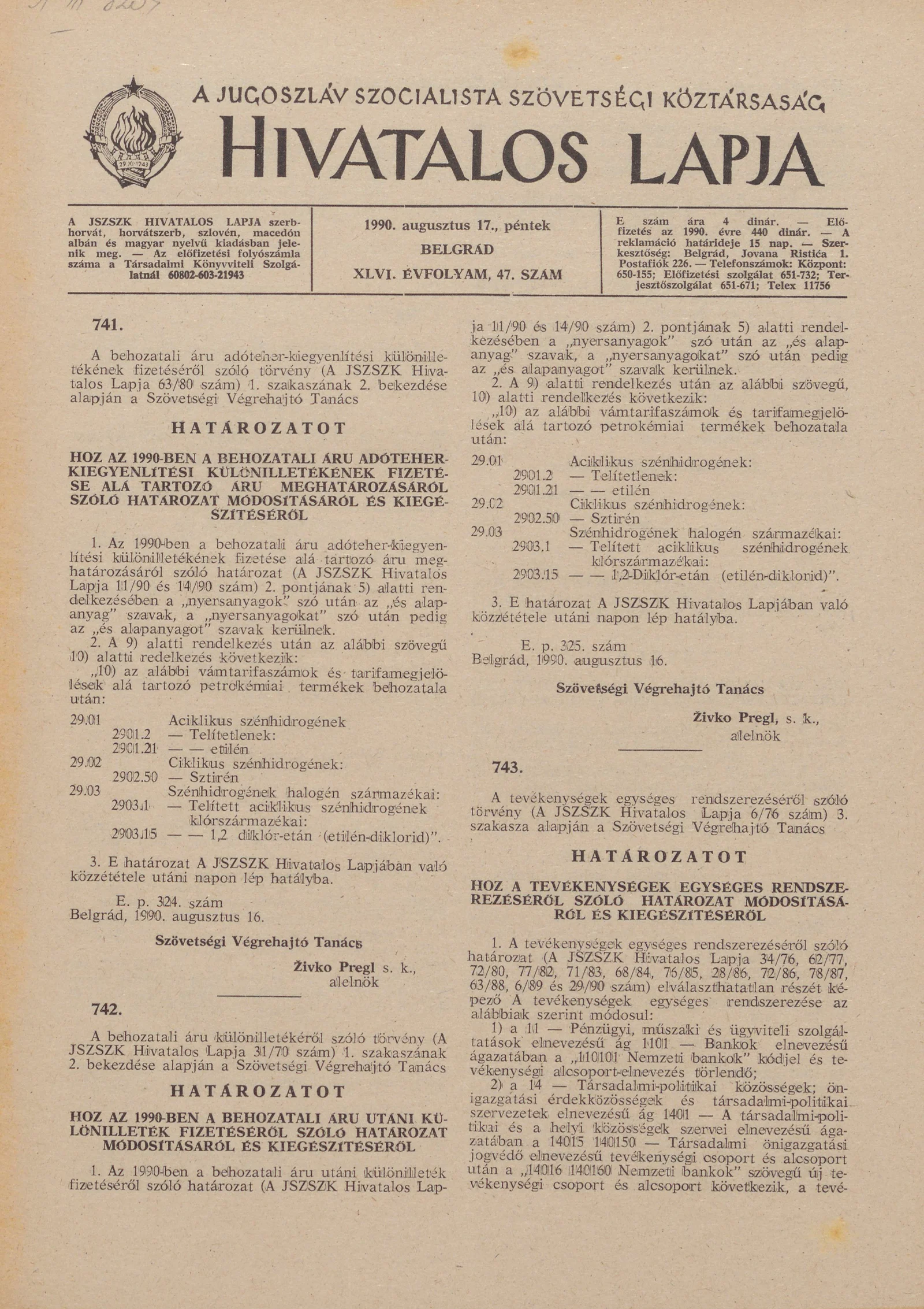 A Jugoszláv Szocialista Szövetségi Köztársaság Hivatalos Lapja, 46. évf. 1990. augusztus 17. 47. sz. 1373–1384. oldal