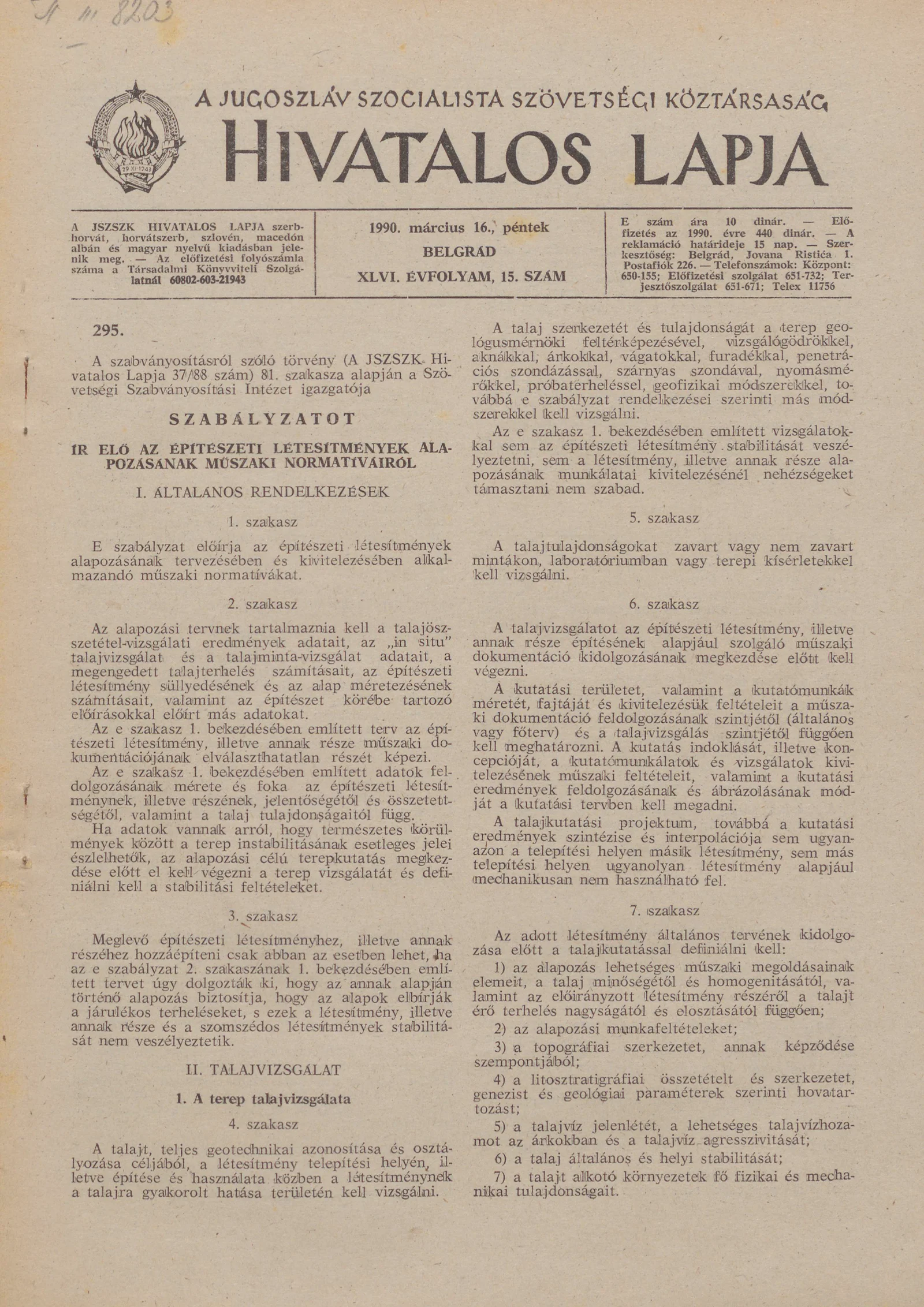 A Jugoszláv Szocialista Szövetségi Köztársaság Hivatalos Lapja, 46. évf. 1990. március 16. 15. sz. 653–716. oldal