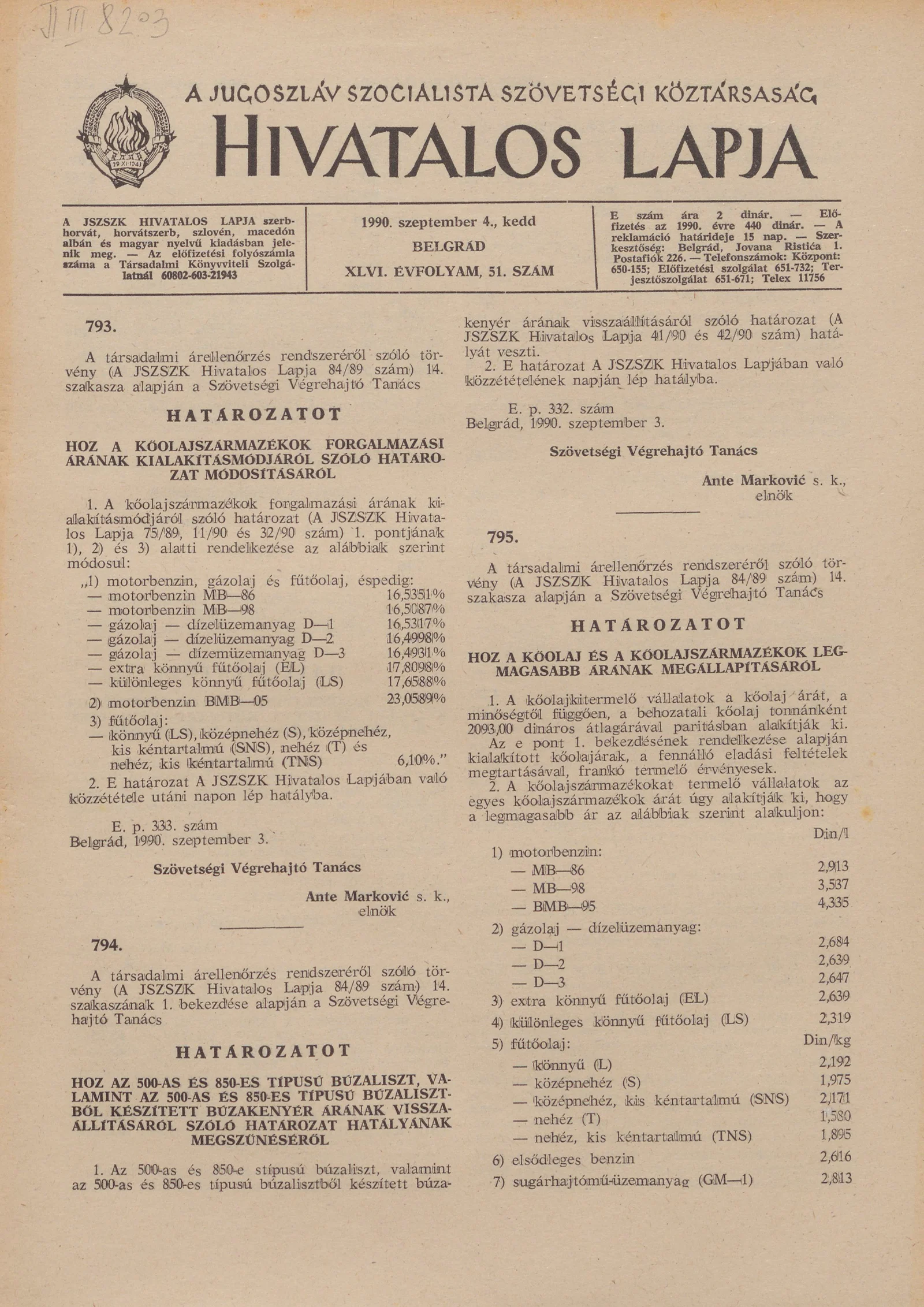 A Jugoszláv Szocialista Szövetségi Köztársaság Hivatalos Lapja, 46. évf. 1990. szeptember 4. 51. sz. 1717–1720. oldal