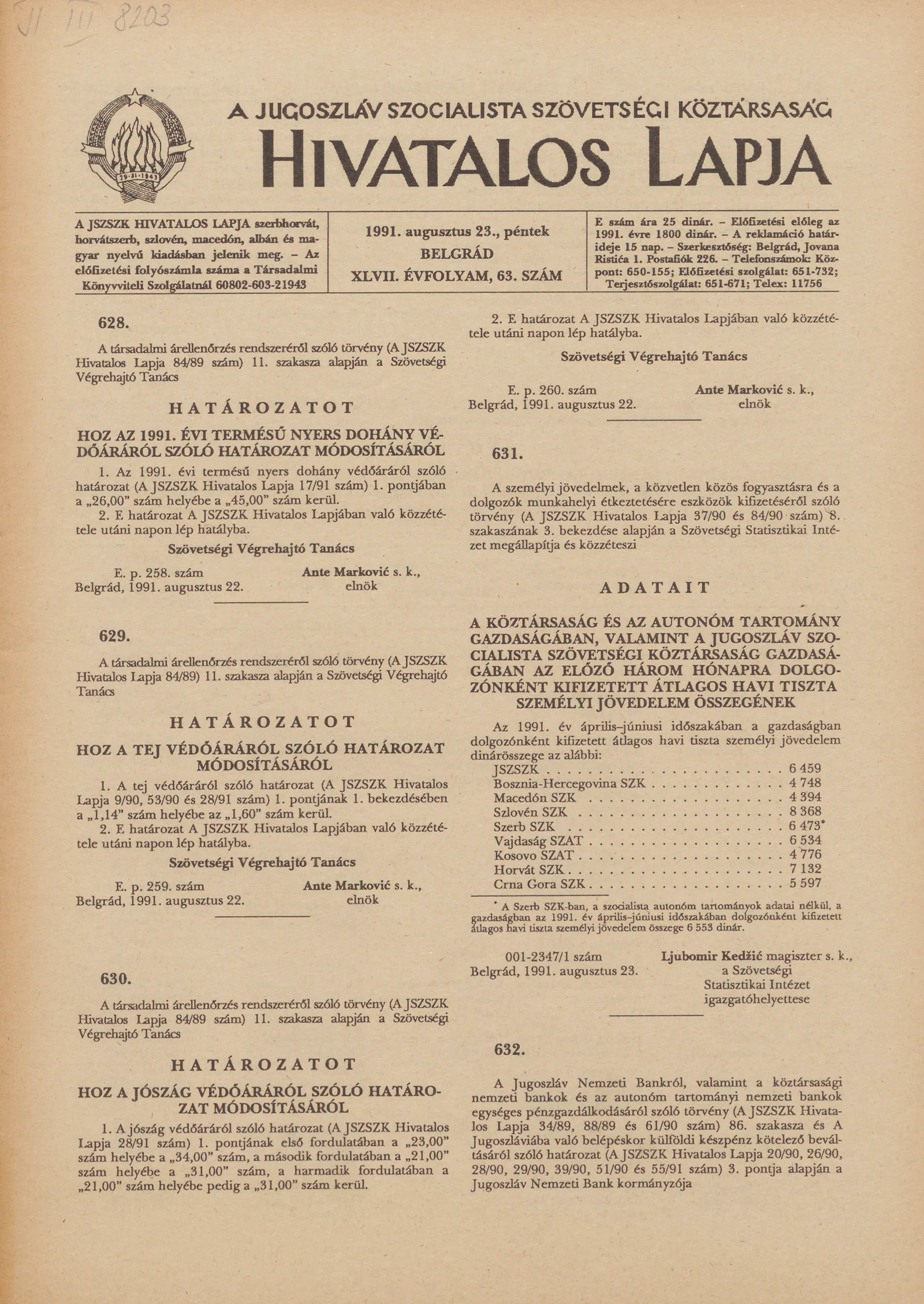 - Adatai a köztársaság és az autonóm tartomány gazdaságában, valamint a Jugoszláv Szocialista Szövetségi Köztársaság gazdaságában az előző három hónapra dolgozónként kifizetett átlagos havi tiszta személyi jövedelem összegének985