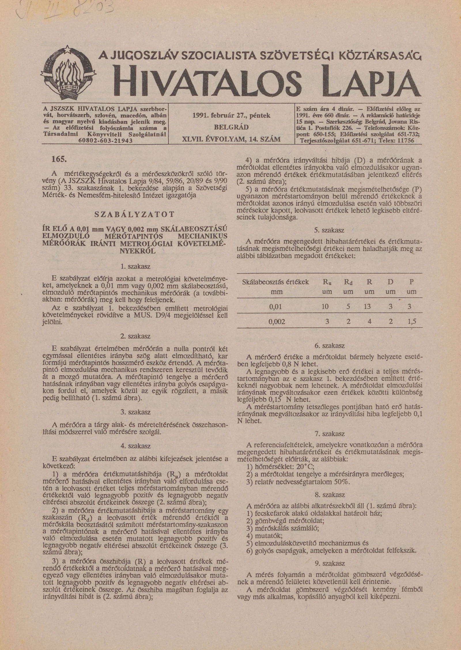 A Jugoszláv Szocialista Szövetségi Köztársaság Hivatalos Lapja, 47. évf. 1991. február 27. 14. sz. 237–240. oldal