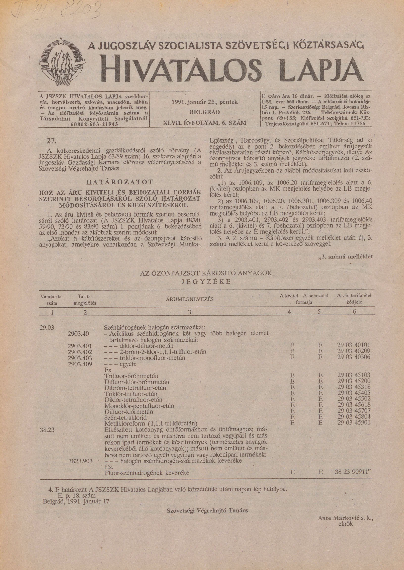 - Határozat az 1991-ben behozatali áru adóteher-kiegyenlítési különilletékének fizetése alá tartozó áru meghatározásáról szóló határozat kiegészítéséről76