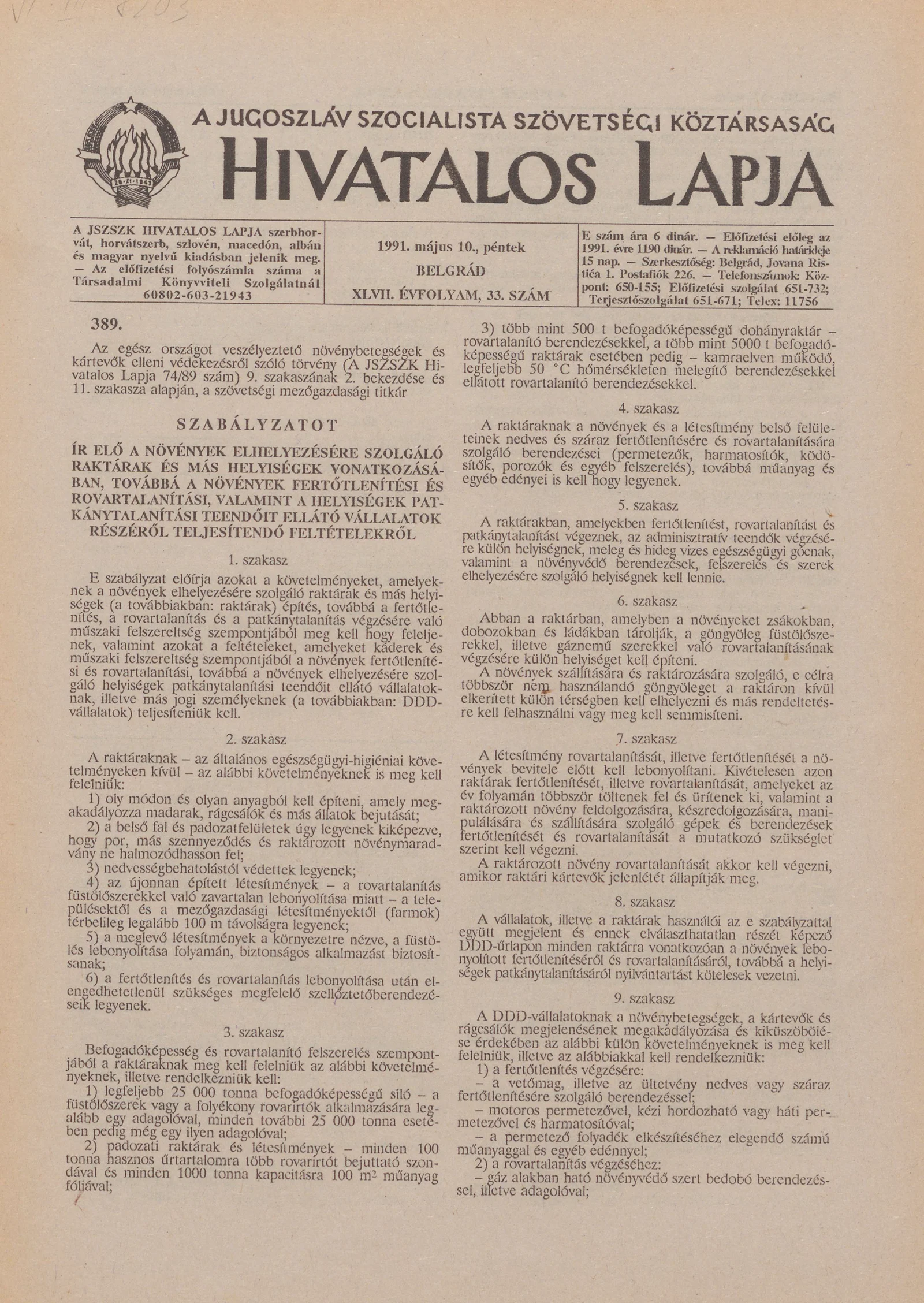 A Jugoszláv Szocialista Szövetségi Köztársaság Hivatalos Lapja, 47. évf. 1991. május 10. 33. sz. 581–584. oldal