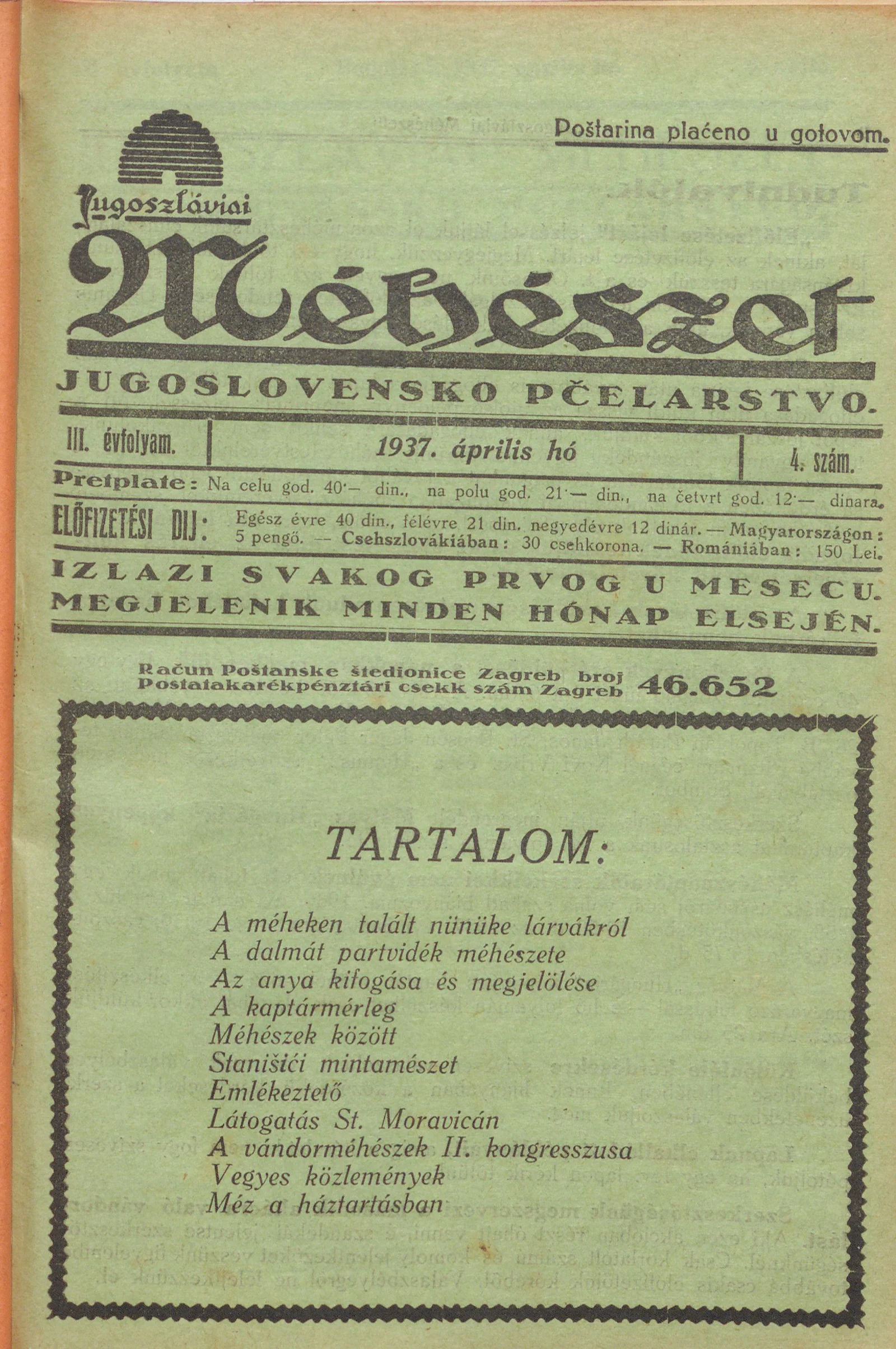 Jugoszláviai méhészet, 3. évf. 1937. április 1. 4. sz.