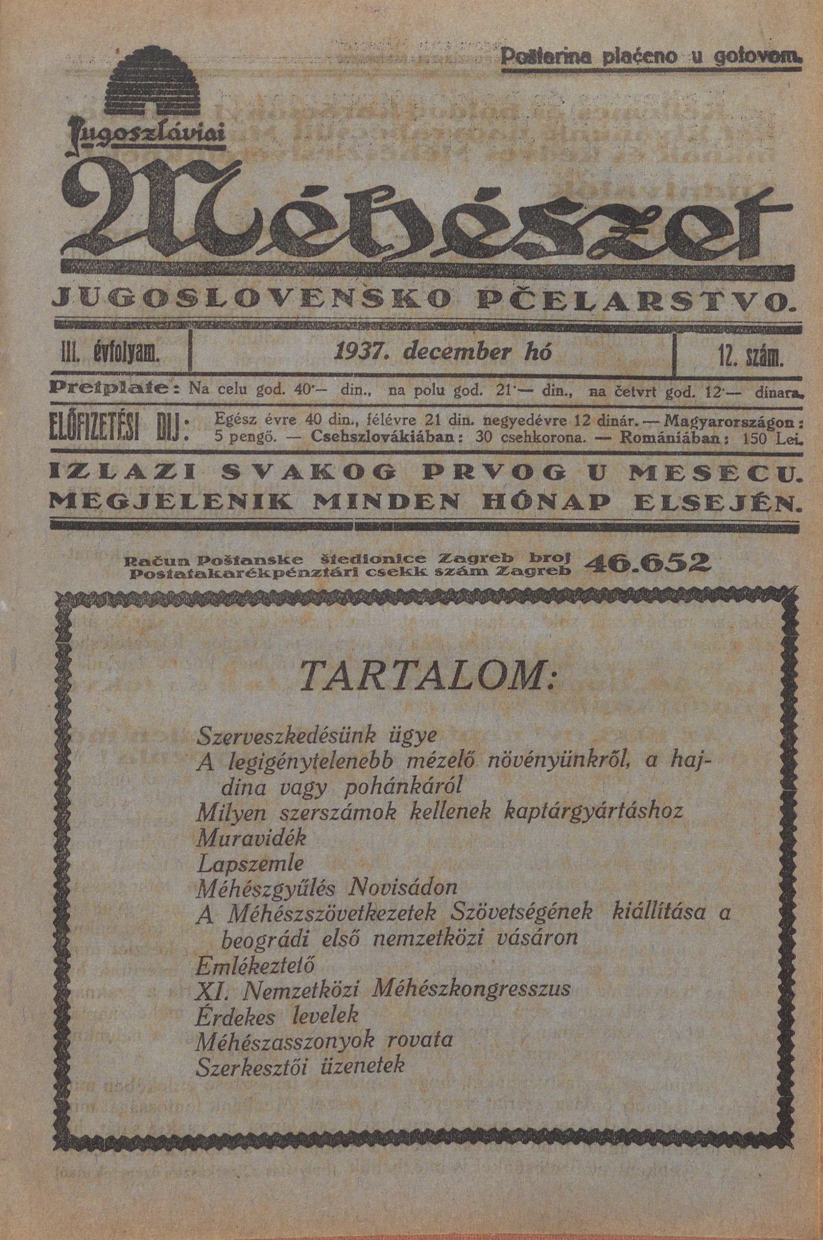 Jugoszláviai méhészet, 3. évf. 1937. december 1. 12. sz.